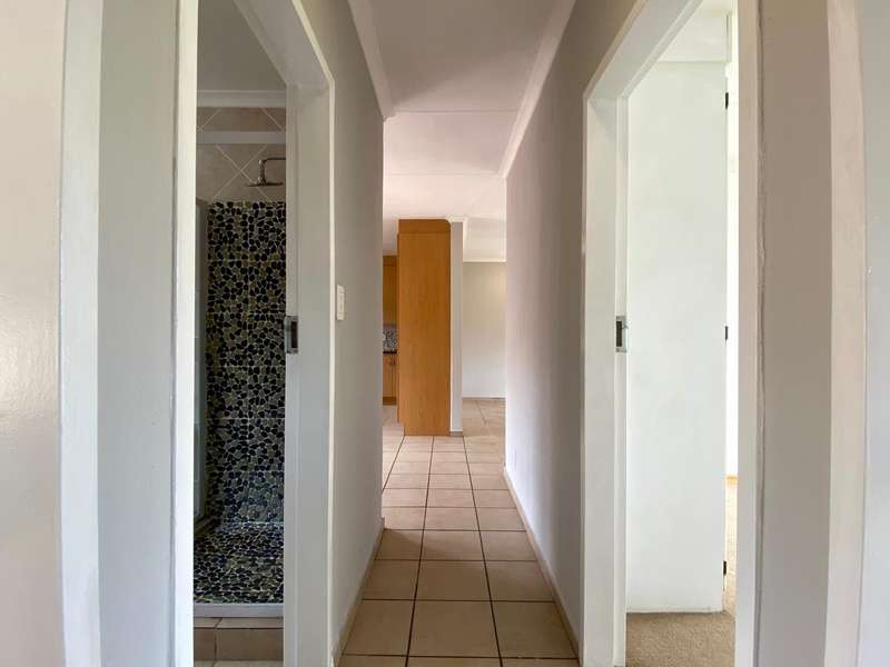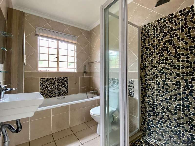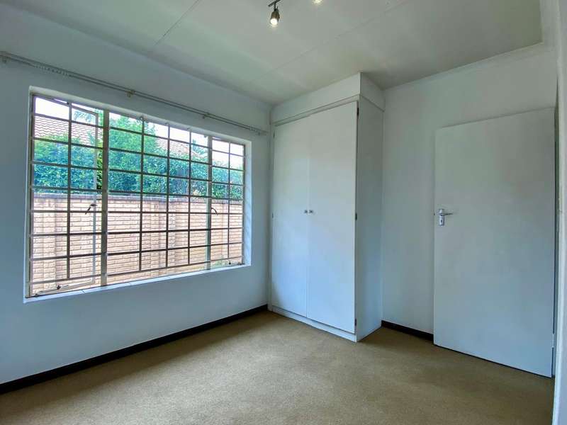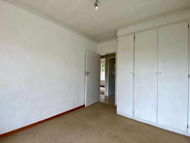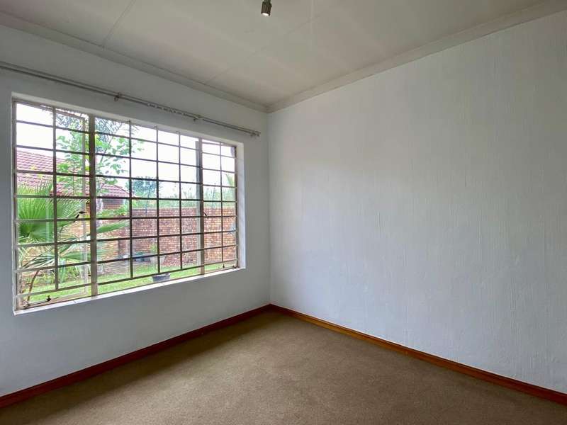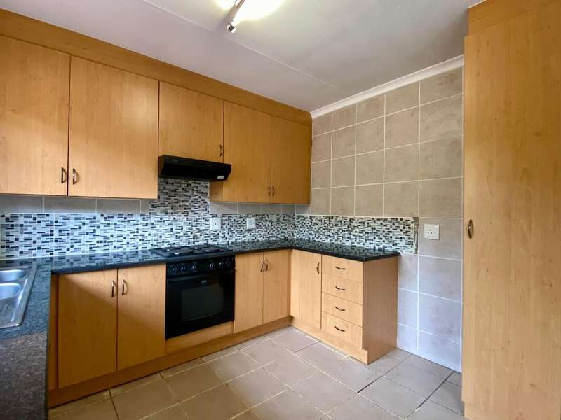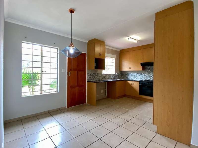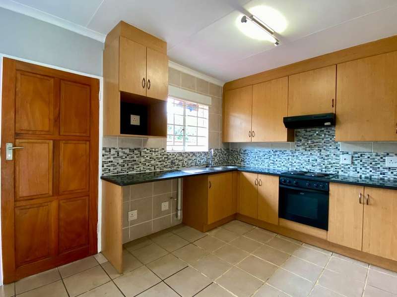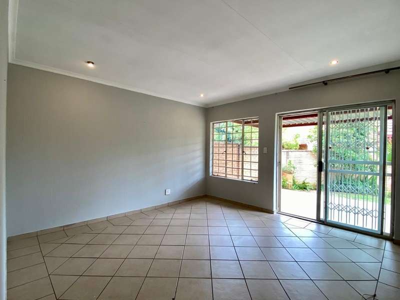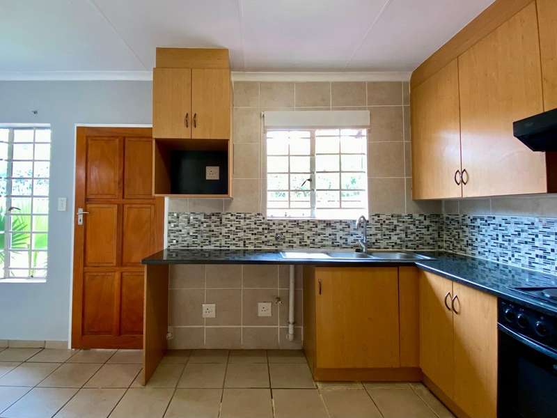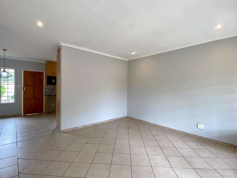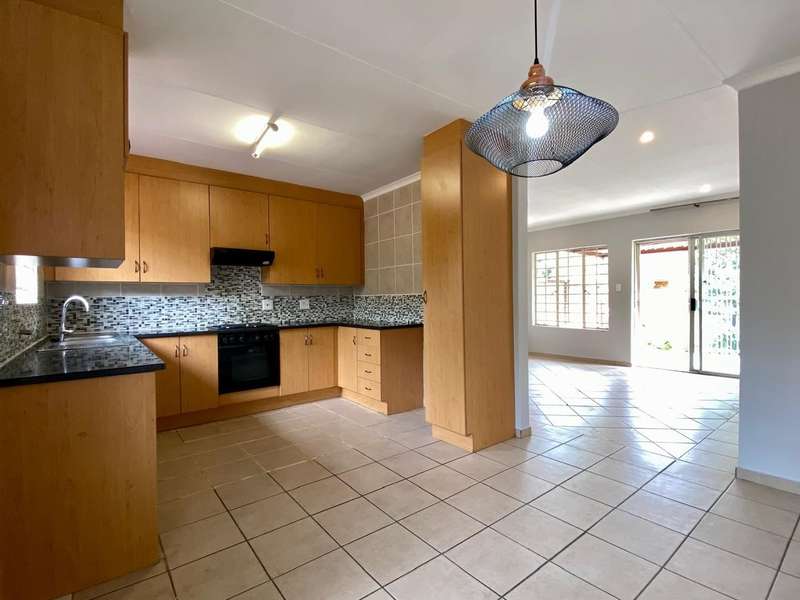 - Corner unit provides big, private, wrap-around-style garden. - Unit is in great condition and has recently been painted and deep-cleaned throughout. - 3 Spacious bedrooms with built-in-cupboards. - 1 Full bathroom. - Kitchen with granite countertops, ample cabinetry and offers space for 2 washing appliances and a single-door fridge. - Spacious, separate lounge and dining areas. - Lounge leads to covered patio, overlooking the manicured private garden. - Double garage and 2 open parking spaces adjacent to the unit. - Ample visitors parking. - Located in a quiet, very well-maintained security complex with 24hr access control, communal swimming pool and kids' play area. - Conveniently close to essential amenities with easy access to main roads. Linton's Corner, Makro Silver Lakes, Solomon Mahlangu and the N4, all within a 5 minute drive. - Water and sewer charges are included in the monthly levy.