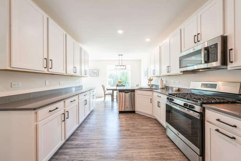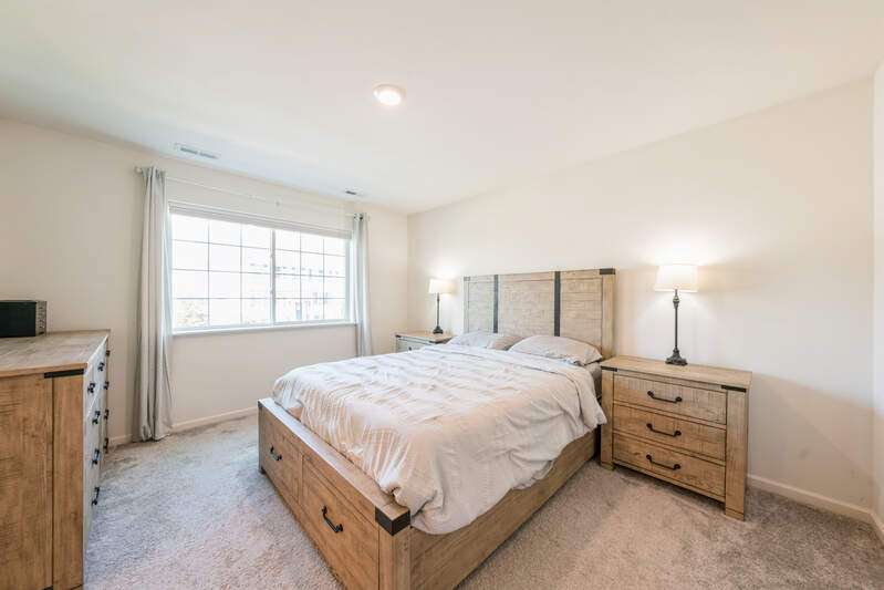 Beautifully maintained and move-in ready, this 3-bedroom, 2.1-bath townhouse is nestled in the highly desirable Prairie Commons. Step inside to a welcoming two-story foyer and a light-filled, open floor plan with 9-foot ceilings. The kitchen features 42-inch white cabinetry, quartz countertops, GE stainless steel appliances, a breakfast bar, and an eat-in area with sliding doors that open to a backyard backing to trees for added privacy. Upstairs, the spacious primary suite offers a walk-in closet and en-suite bath, while two additional bedrooms share a full hall bath. The laundry room is conveniently located on the second floor. Additional highlights include Wi-Fi Certified home featuring wired Wi-Fi amplifiers, Ring doorbell, smart lock, Wi-Fi thermostat, Wi-Fi enabled garage door opener, and more. Located near shopping, dining, recreation, I-88, bike path, park, open green space, and a scenic pond. This townhouse offers comfortable and convenient living.