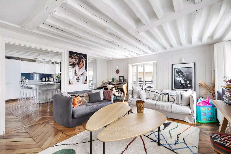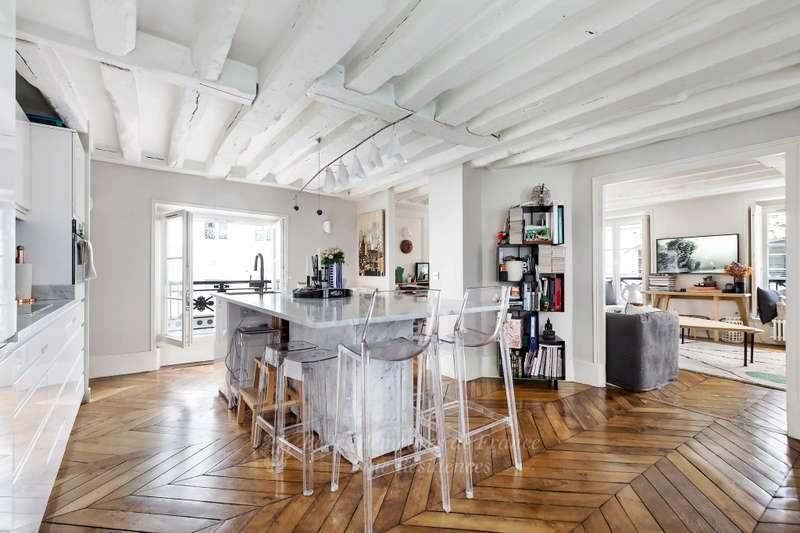 Carré des Antiquaires neighbourhood. This 100 sqm apartment allying period charm with contemporary comfort is on the 1st floor of a fine 18th century private mansion with a paved courtyard. Triple-aspect and bathed in sunshine, it includes a spacious living/reception room featuring exposed beams, an open-plan kitchen with a central island, three bedrooms and two shower rooms. With a cellar and a courtyard parking space.