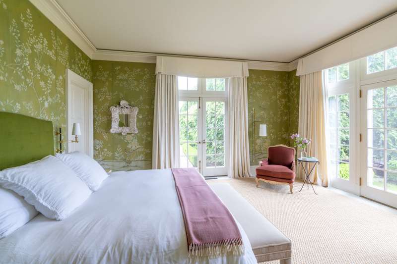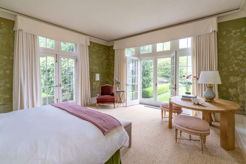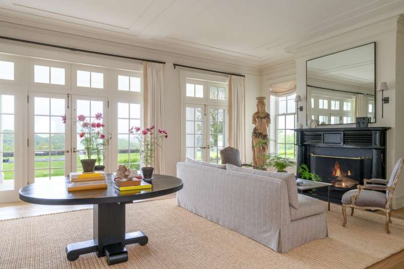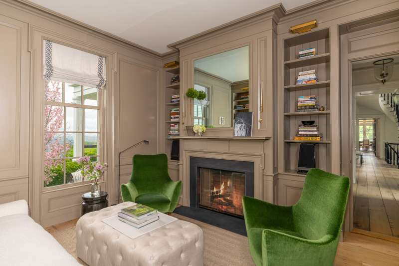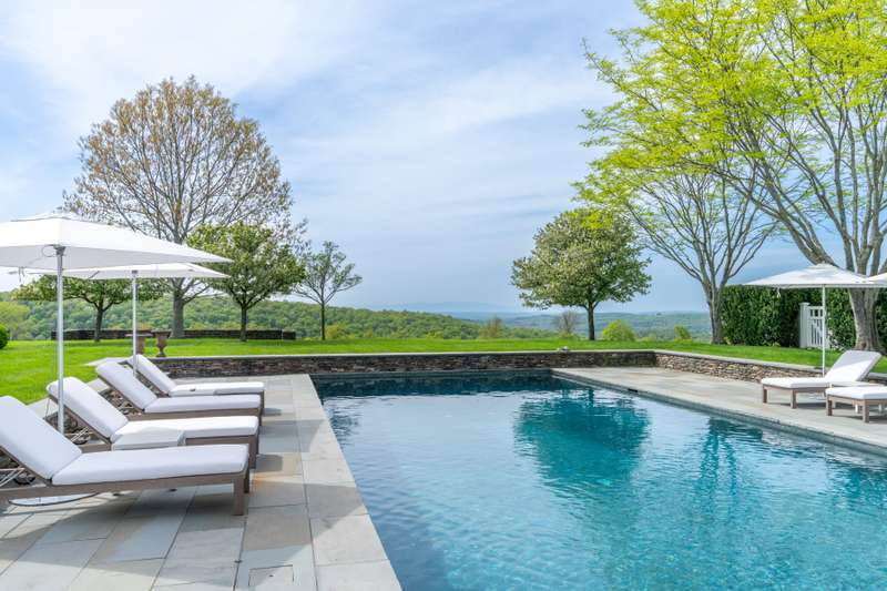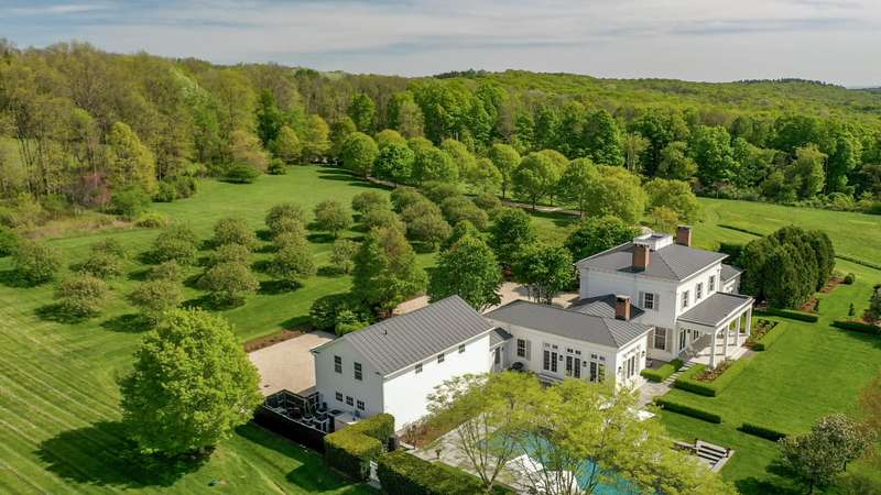 A singular and exceedingly rare residence, this exquisite home was masterfully designed by renowned AD100 architect Gil Schafer, featuring interiors by Antony Todd and landscape architecture by Warren Byrd, all set against panoramic views of the Hudson Valley and Catskill Mountains. This home is a Greek Revival masterpiece that blends timeless elegance with modern sophistication. As featured in Elle Decor, the interiors showcase meticulous craftsmanship and richly layered detail. A dramatic double-height entry gallery centers around a sculptural spiral staircase, offering a striking introduction to the home. From there, a 36' x 24' Great Room unfolds with 11'+ ceilings, two wood-burning fireplaces, and French doors leading to an expansive covered porch that captures stunning sunset views. The kitchen is outfitted with top-of-the-line appliances, hand-hewn beams, dual pantries, and an inviting lounge area, perfect for gathering and entertaining. A large-scale wet bar connects the kitchen and great room, while the adjacent dining area opens to a beautifully landscaped pool terrace. A heated breezeway leads to private guest quarters, offering two en-suite bedrooms and a comfortable sitting room. In the west wing, a richly paneled library with fireplace sits beside the serene primary suite, which features hand-painted de Gournay wallpaper, dual dressing rooms, luxurious bathrooms, and views of an English garden and the rolling landscape beyond. Upstairs, two additional bedroom suites each feature private sitting areas and discreet breakfast bars, creating refined and restful retreats. An extraordinary offering where architectural pedigree, design excellence, and natural beauty converge.
