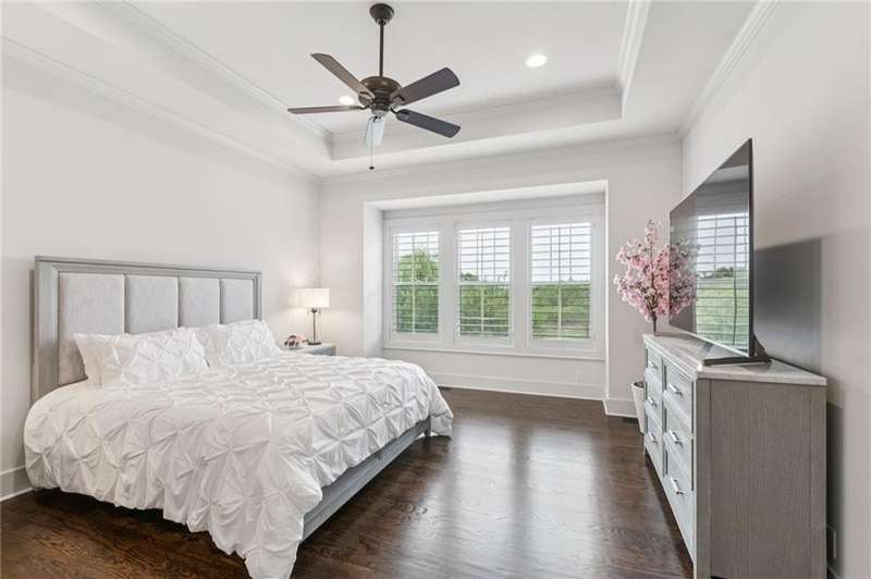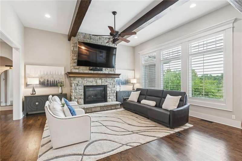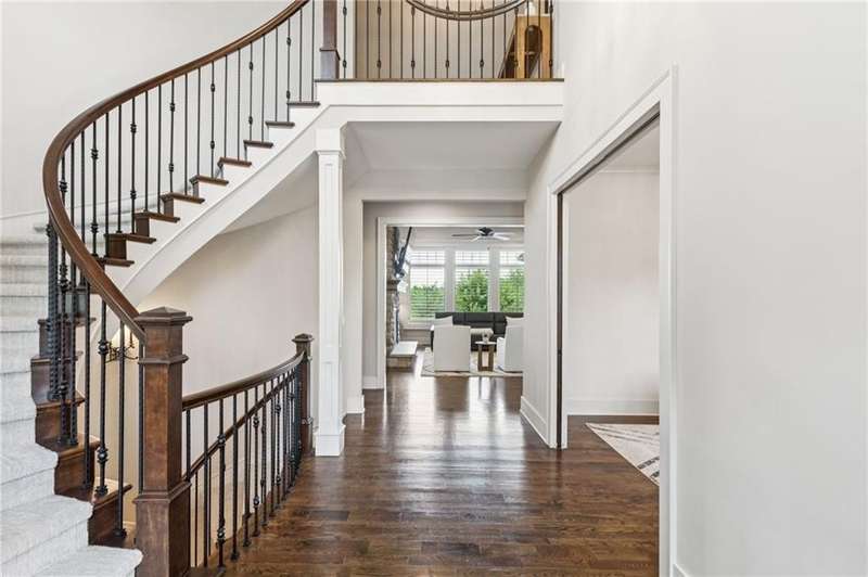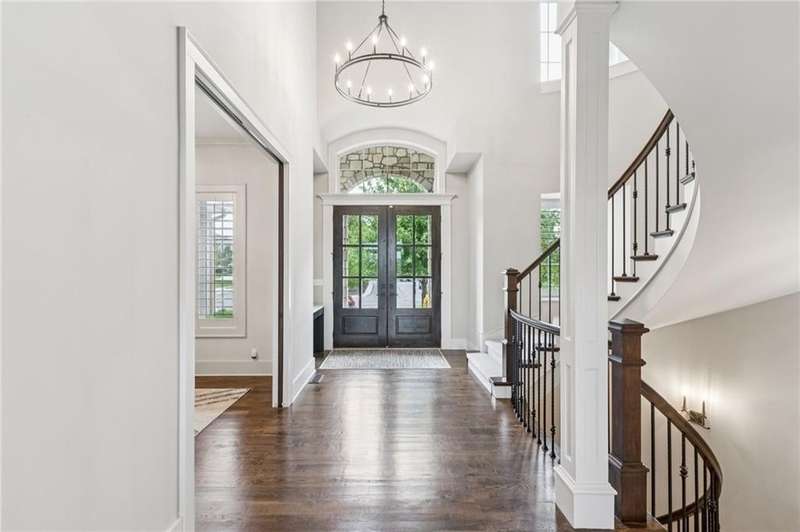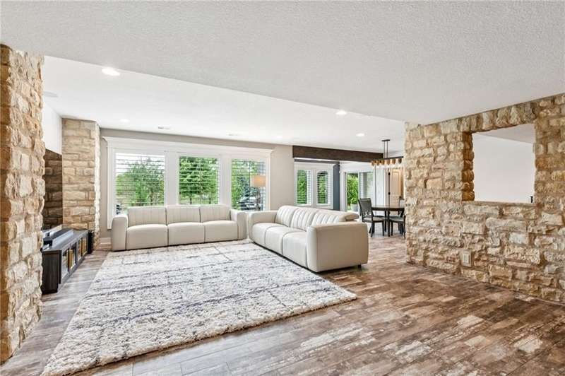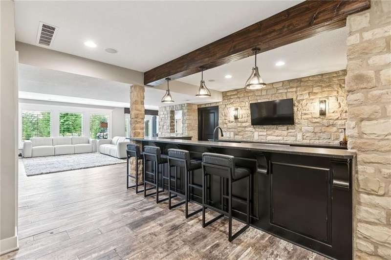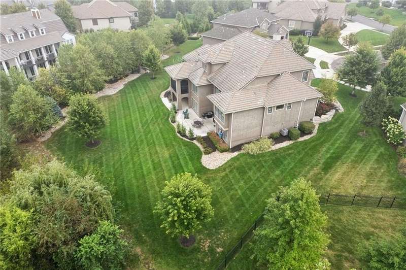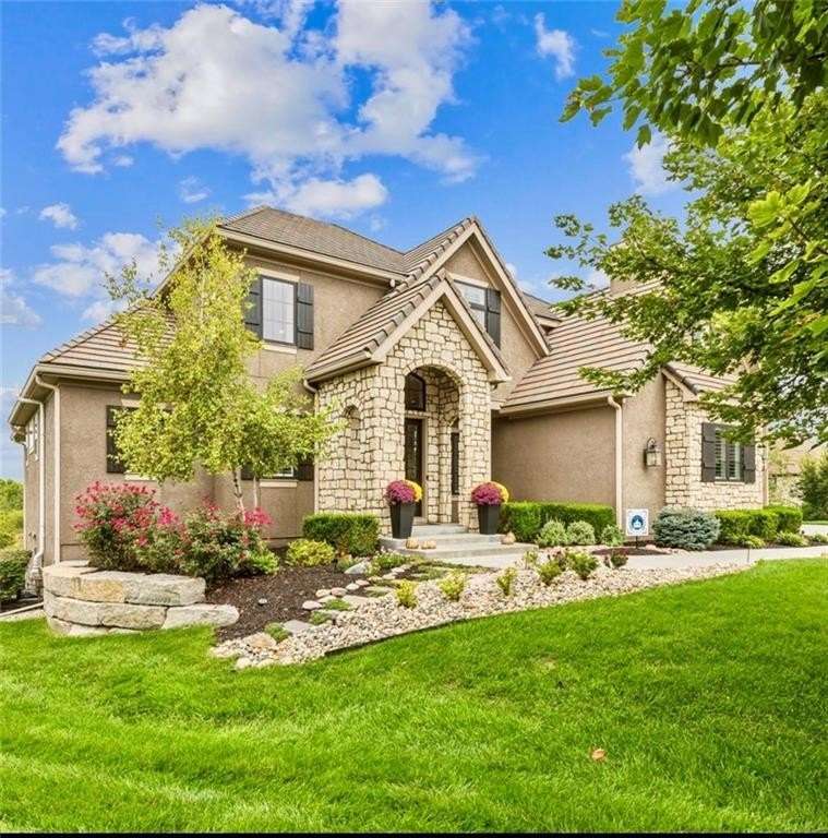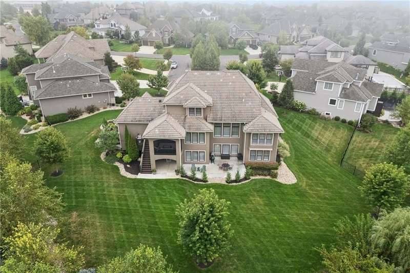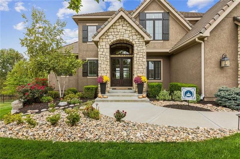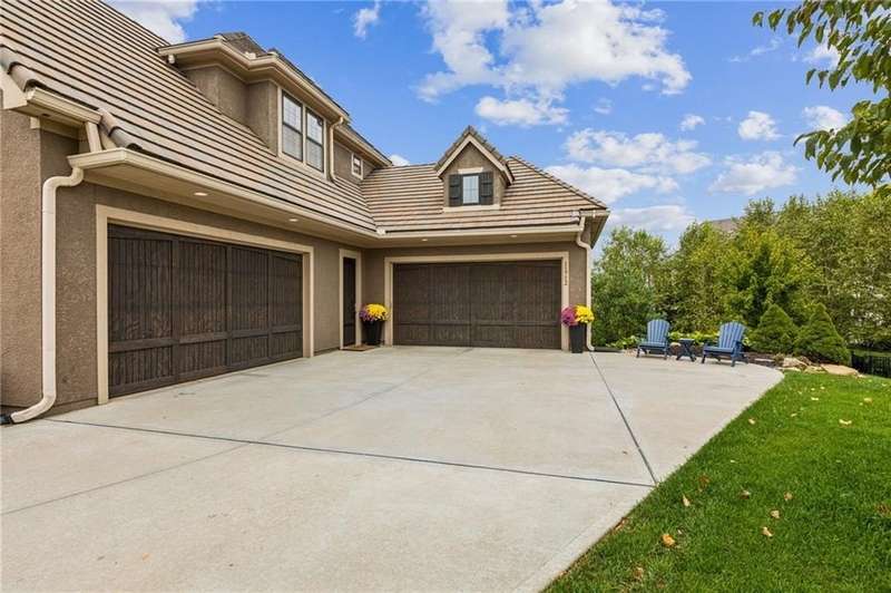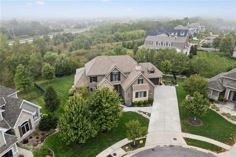 Your chance to own a true masterpiece in Overland Park’s premier luxury community—Mills Farm! This one-of-a-kind custom Todd Hill home combines timeless elegance with modern comfort on a rare, private cul-de-sac lot backing to greenspace. Featuring 5 bedrooms, 6.1 baths, and a rare 4-car epoxy-finished garage, every detail has been thoughtfully designed and meticulously maintained. Step inside through brand-new double doors into an impressive foyer with a sweeping curved staircase, newly replaced high traffic stair carpet, and updated chandelier. A dedicated office with hidden glass pocket doors overlooks the landscaped front yard, while the chef’s kitchen boasts a massive island, walk-in pantry with grocery door, and seamless flow into the great room with stone fireplace and stained beams. Walk out to the low-maintenance covered deck with inviting fireplace and separate grilling space, perfect for entertaining. The main-floor primary suite offers a private retreat with spa-like bath, dual vanities, and euro shower. Upstairs, three large bedrooms each feature hardwoods, private en-suites, and massive walk-in closets. Don’t forget to see the hidden room behind the custom built book shelfs. The finished walkout lower level is designed for entertaining, with a stunning wet bar, rec room, billiards area, 5th bedroom, full bath, and access to a stamped concrete patio perfect for outdoor entertaining. Enjoy serene views from your expansive, treed backyard—the perfect pool lot. Additional high end features include: stone columns, wood beams, plantation shutters, custom ceiling treatments, intricate millwork, upgraded lighting, and a durable tile roof. All just a short walk to the community pool, clubhouse, and award-winning elementary school. Don’t miss your chance to view this incredible home!