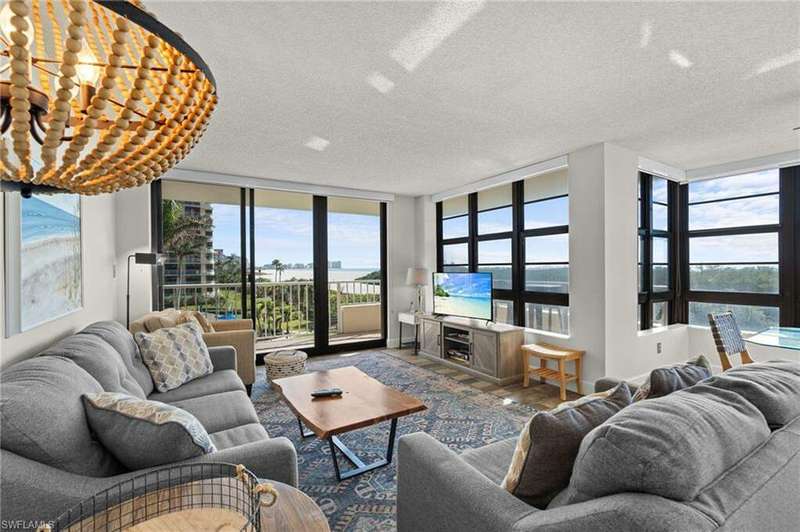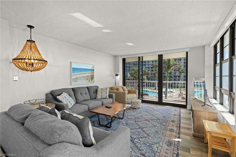 This beautifully decorated turnkey unit offers breathtaking wraparound views of the Gulf of Mexico, pool, and surrounding vistas from an oversized lanai-perfect for relaxing or entertaining. The interior features stunning vinyl flooring throughout, elevating the decor, and a custom-designed kitchen with modern cabinetry that adds both style and functionality. Located in the desirable South Seas Towers, this exceptional property combines luxury living with resort-style amenities, including a year-round heated pool, fitness center, tennis and pickleball courts, boat docks, and kayak/canoe storage. Additional conveniences include 24-hour gated security and covered garage parking. Recent renovations to the lobby, elevators, and social areas enhance the appeal of this coastal retreat. Your dream home awaits!