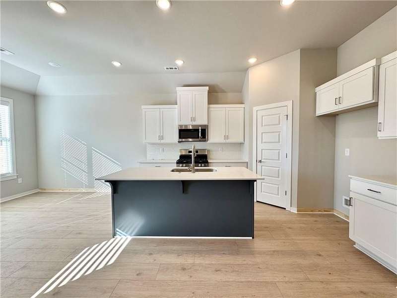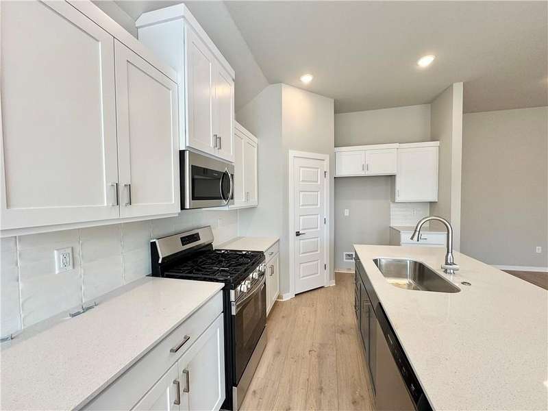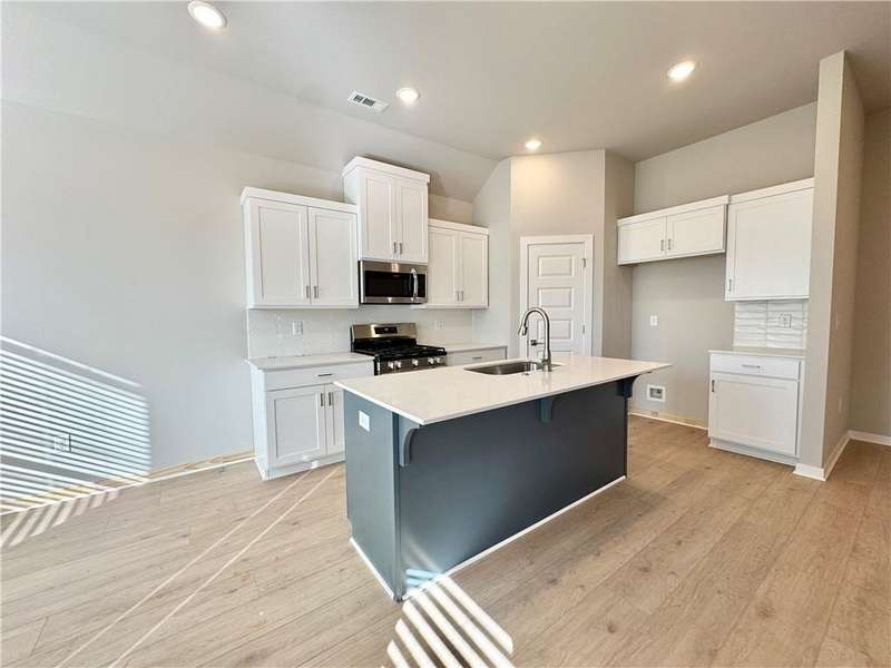 Discover your dream home in the sought-after Osage Hills neighborhood. Benton plan with garage on the left and North facing! 10 ft ceilings in the living/kitchen area, linear electric fireplace in the living, 1 level, LVP flooring throughout the main living areas and primary bedroom, quartz countertops and more. Chef's kitchen boasting frigidaire stainless steel appliances, gas range, pantry, quartz countertops, bar pull handles, large island and gorgeous backsplash. Luxurious primary bedroom features abundant natural light, while the spa-like primary bathroom offers a walk-in shower, double sinks, and spacious walk-in closets. Additional features include three large secondary bedrooms and a separate laundry room. Nestled on a generous lot with covered patio that overlooks the serene sodded, fully fenced backyard. Model home located at 6008 SW Coywolf St- Lot 122.