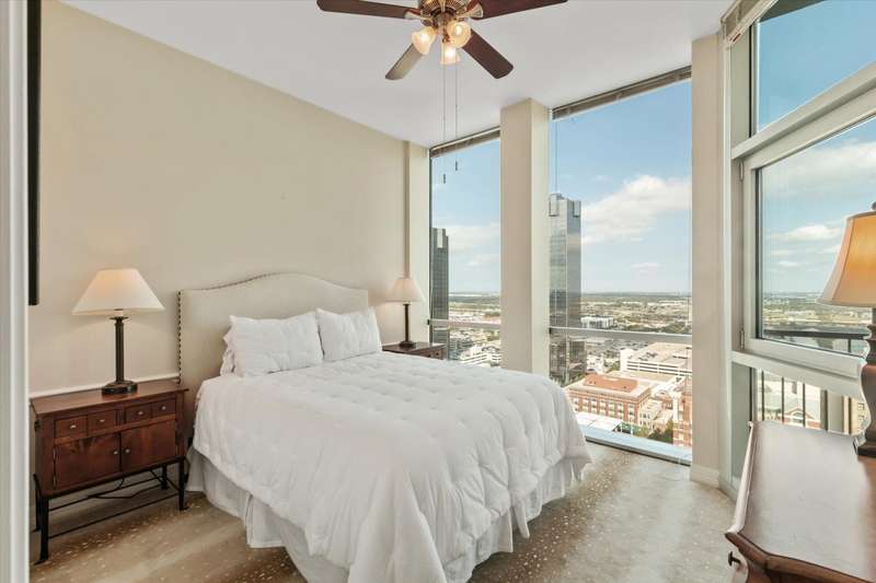 FURNISHED RENTAL AVAILABLE! This fabulous 2 bedroom, 2 bathroom high-end condo features 1,175 SF and stunning eastern views, over looks Sundance Square. The floor to ceiling windows allows for amazing sunrises in the morning. The kitchen features granite counter tops and stainless steel appliances. The Tower features 24-7 concierge service, resort pool deck, community grill area, state of the art fitness center, remodeled community room, firepit area and guest suites. The application fee is $100 per applicant. A $150 move-in fee shall apply. Extensive background check will be required.