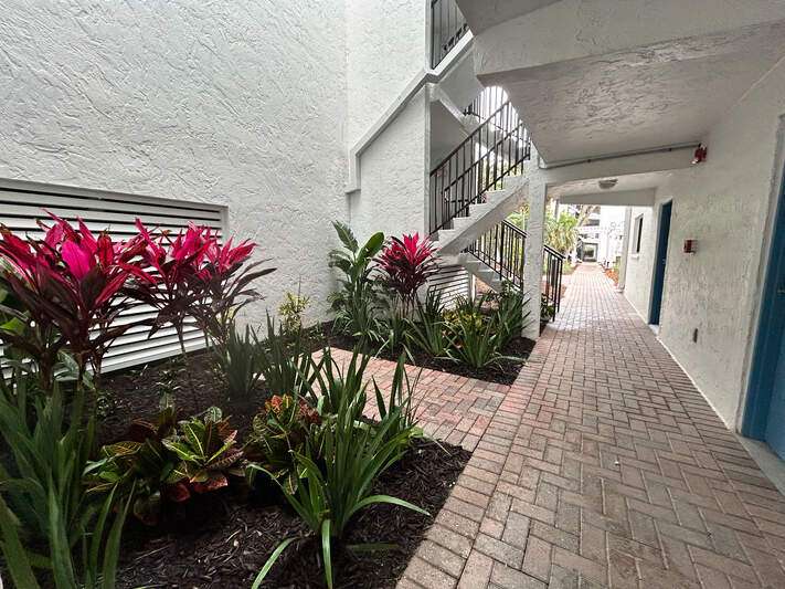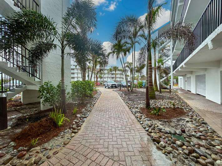 Located behind the gates of South Seas Resort, the exclusive South Seas Villas community offers a serene coastal retreat with a sundeck, pool, gazebo featuring a outdoor dining area, and BBQ facilities. Nestled within the southern enclave, just steps from the beach, this renovated top-floor, two-story villa overlooks a lush courtyard and tropical vegetation. The open-concept design showcases quartzite countertops, white shaker cabinetry, and tile flooring in living areas, all complemented by stylish coastal decor and furnishings. Natural light pours in through impact sliding glass doors and a large picture window, while the screened lanai provides a perfect spot to enjoy the island breeze. The lower level hosts a private guest ensuite, while the upper level boasts a spacious primary ensuite, creating an ideal layout for both relaxation and entertaining. Experience resort-style living in this beautifully appointed villa- where modern elegance meets coastal charm.