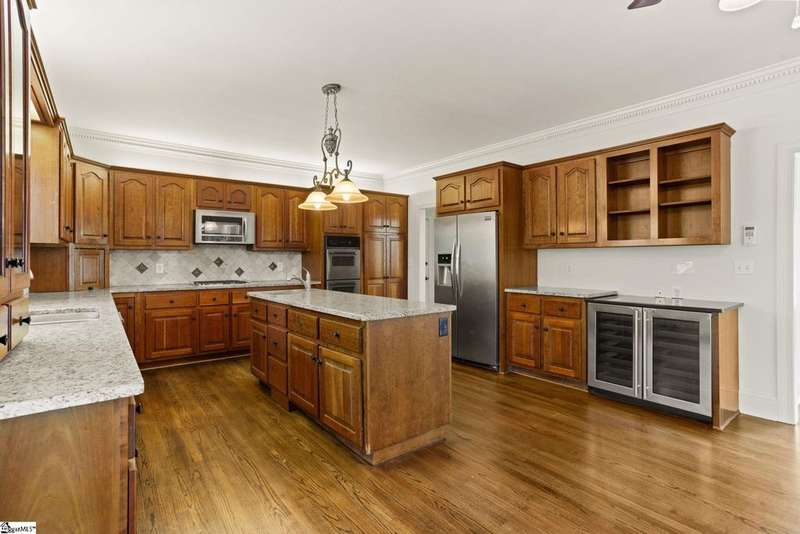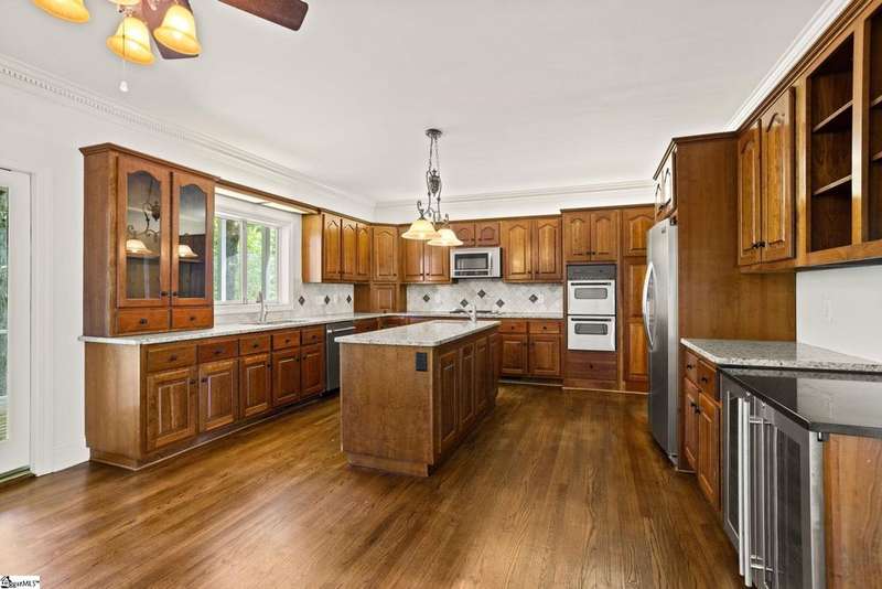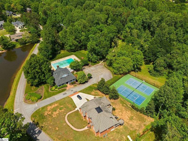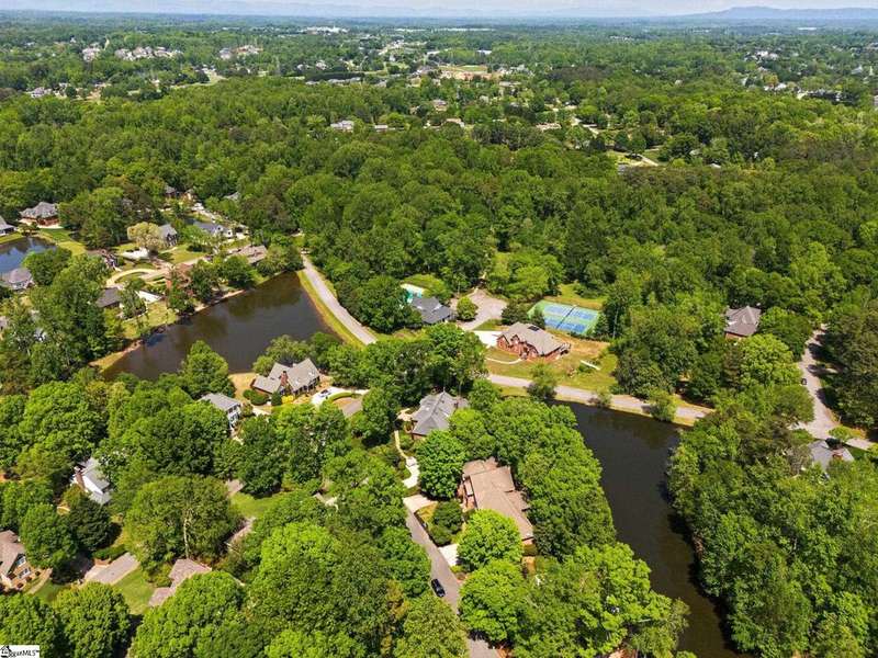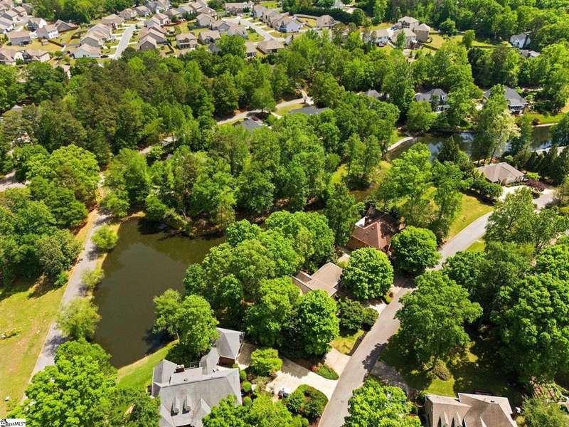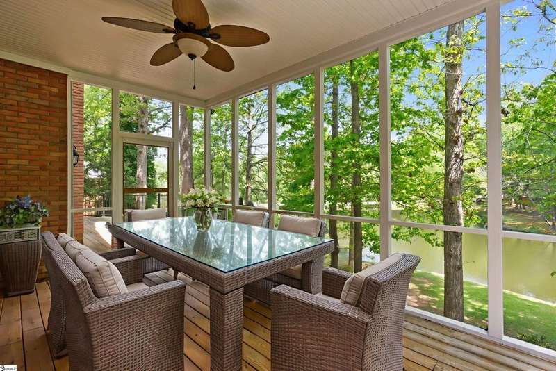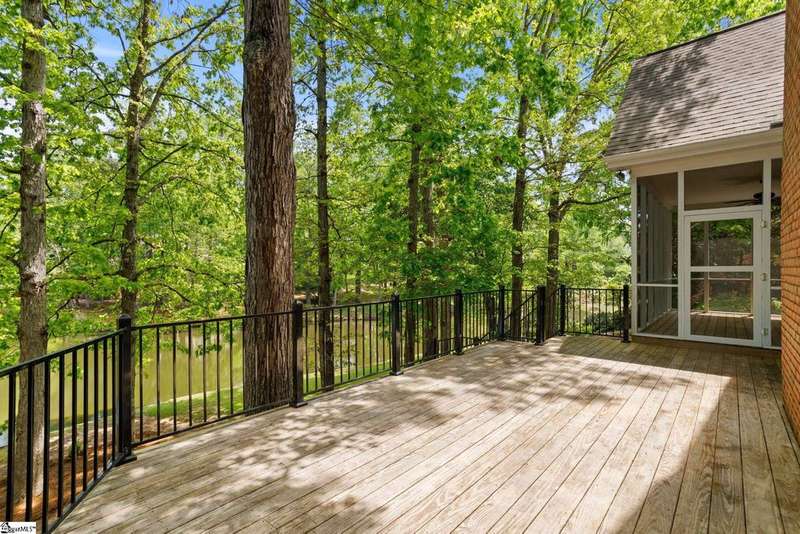 As I pull into Middle Creek, I can already feel the calm settle in. The wide streets are framed with trees showing off their fall colors, porches are dotted with pumpkins, and there's a festive feeling in the air. This neighborhood is at its best in autumn. You can almost picture pots of chili simmering, kids playing in yards, and the excitement of Saturday football drifting through the breeze. At the edge of the lake sits a true Southern charmer, an all brick home that looks even more beautiful with the golden leaves glowing around it. The lake behind it sparkles as the sun sets, reflecting fiery colors across the water. It feels like the perfect backdrop for every season, but especially fall. Through the double front doors, the foyer opens wide with sunlight spilling across glowing hardwood floors. Not a stitch of carpet in sight, just polished wood carrying throughout. To the right, the dining room stretches out, the kind of room made for Thanksgiving feasts, game day spreads, or holiday parties. The kitchen feels endless. Granite counters go on and on, cabinets are everywhere, and there is even a wine cooler tucked neatly into the design. The oversized laundry doubles as a walk in pantry, giving you space for all the snacks and supplies you could want. From here, step out to the screened porch and the large deck. This is where life happens. Imagine grilling burgers while the game plays on a TV under the porch, friends gathered with cold drinks in hand, and the lake stretching out like a painting in the background. The family room is huge. Big windows frame the view, and there is more than enough room for an oversized sectional. What makes it even better is the wet bar tucked just off to the side. It is perfect for halftime cocktails, cider in the fall, or keeping drinks close when entertaining a crowd. The primary suite is on the main level, privately tucked away. The bath feels like a retreat with a soaking tub deep enough for long bubble baths, a large walk in shower, and all the details that make life feel a little more comfortable. Hardwood floors flow here too, with tile placed in just the right spots. Upstairs is another primary suite that feels just as special. It has its own bath and closet space, but the balcony is what steals the show. Overlooking the lake, it feels made for quiet mornings with coffee or relaxing evenings after a long game day. Another guest bedroom and full bath are upstairs as well, with hardwoods still running throughout. The basement adds even more. Two additional bedrooms share a Jack and Jill bath, making them perfect for weekend guests or family during the holidays. The rec room is anchored by a cozy fireplace that just begs for movie marathons or football Sundays. From here, you can step right out to the covered patio and head straight down to the lake. Middle Creek is known for its beauty, its sense of community, and the pride that every neighbor takes in their home. In the fall, it turns into something magical. This is the kind of place where life slows down a little, neighbors wave from their porches, and every Saturday feels like game day.