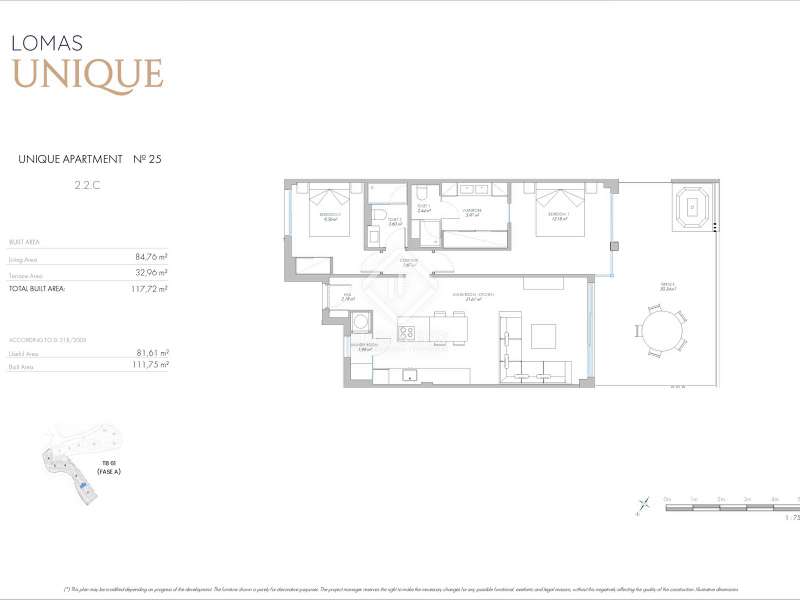 Lomas Unique is a new luxury development located in the El Higuerón area of Fuengirola, just a stone's throw from the Mediterranean Sea and with perfect weather all year round, making this the ideal setting for enjoyment and relaxation. This second floor apartment has been meticulously designed to deliver the perfect blend of elegance and functionality with great attention to detail. It covers 85 m² of interior space plus a 33 m² terrace. The apartment has an open-plan living, dining and kitchen area, followed by two bedrooms and two bathrooms. Luxury features in these exclusive residences include excellent jacuzzis on the terraces, stunning panoramic views and high-end fixtures and finishes throughout. The kitchens, fully equipped and furnished with cabinets from the Lube brand and Dekton countertops from Cosentino, offer a functional and elegant space. High-quality appliances from brands such as Electrolux ensure functionality and style in everyday life. The bathrooms, which are elegant and modern, feature sanitary ware from prestigious brands like Duravit and Hansgrohe taps. A dryer and washing machine will be installed in the laundry room. Sustainable materials and methods have been used that reduce CO2 emissions, provide real thermal insulation, and minimise energy consumption, all while preserving the environment. Communal amenities include a state-of-the-art gym with cutting-edge technology to cater for all fitness needs, and a sauna and spa to unwind at the end of a long day. There is a lounge where residents may enjoy gatherings with friends and family and co-working spaces for residents who work from home. The extensive landscaped areas and swimming pools with sun terraces offer outdoor spaces to enjoy the Mediterranean climate. What's more, the Higuerón Resort boasts exquisite sports facilities, a selection of high-end Michelin-starred restaurants and a luxurious spa and fitness centre. Please contact us for further information.