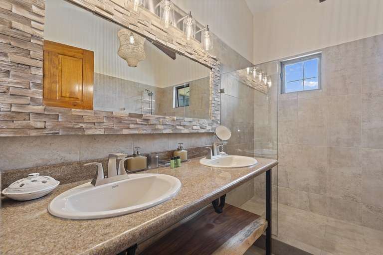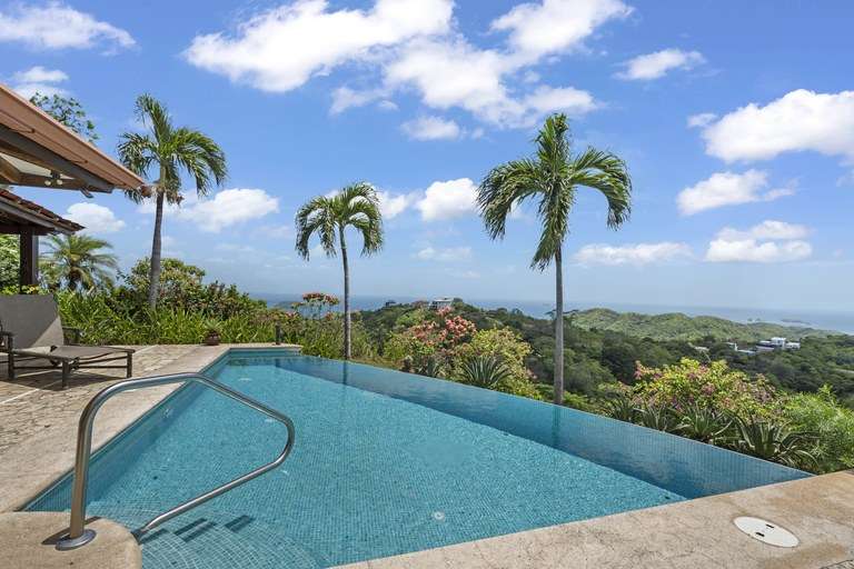 Step outside to your private oasis. The infinity-edge pool overlooks the Pacific Ocean and is complemented by a fully equipped outdoor kitchen, bar, BBQ grill, and ample dining and lounging spaces—perfect for enjoying Costa Rica's year-round tropical climate.