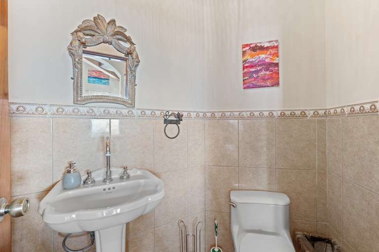 Welcome to Casa Miramar, a 4-bedroom, 4.5-bath Mediterranean-style villa located in the hills of Pacific Heights. The home's interior showcases soaring vaulted ceilings with exposed wood beams, expansive windows, and elegant finishes that highlight the stunning ocean views.