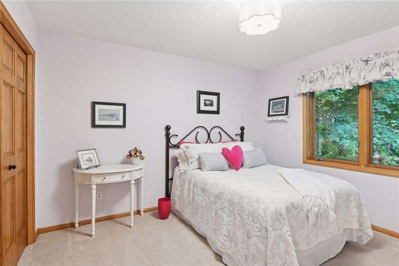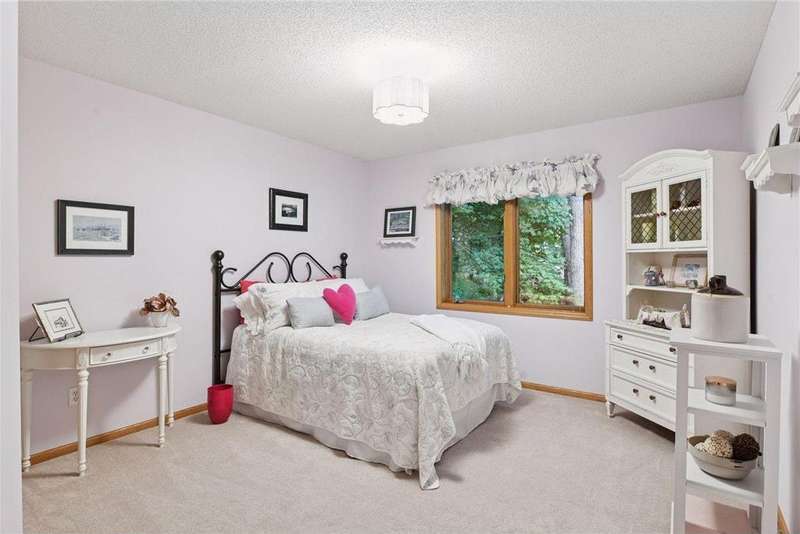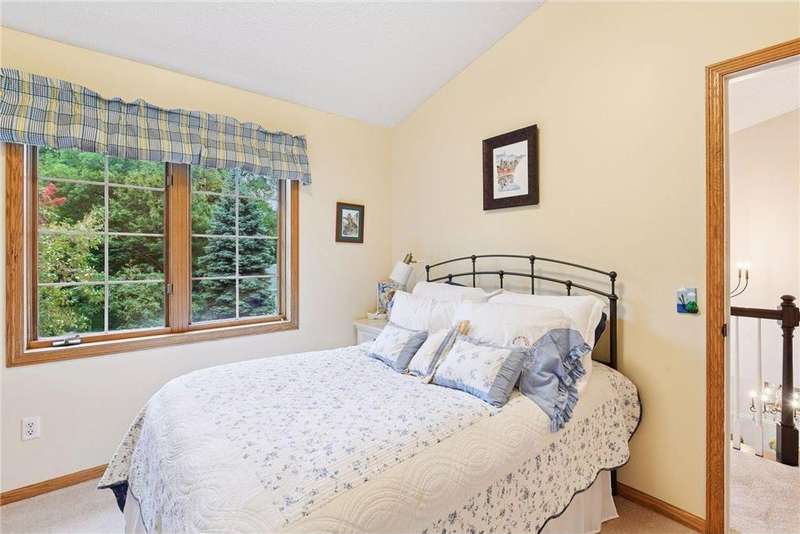 An extraordinary opportunity in Hazeltine Bluffs! Don't miss this beautifully maintained and wonderfully presented two story ideally situated on private wooded lot. Big maple trees will soon burst into their magnificent fall colors providing an amazing bright yellow backyard canopy. Thoughtfully designed with a comfortable layout, warm and inviting spaces, and finished on three levels. Kitchen includes a pantry, windows at sink, and refreshed with black stainless-steel appliances, Cambria countertops, and refaced cabinets. Formal and informal dining options, plus a breakfast bar for those on the go! Easy access to the deck and backyard stamped concrete patio with firepit - the perfect spot to relax in the natural setting. The upper level boasts three secondary bedrooms, an updated full bath, and a stunning primary suite with walk-in closet and pampering bath you won't want to leave! Walkout lower level offers nice guest accommodations with fifth bedroom and new three-quarter bath, a dedicated office providing work from home capability, plus lots of casual space for movies, fun and games. Great Chaska location in close proximity to parks & trails, shopping and major thoroughfares. Available starting Friday, 9/26!