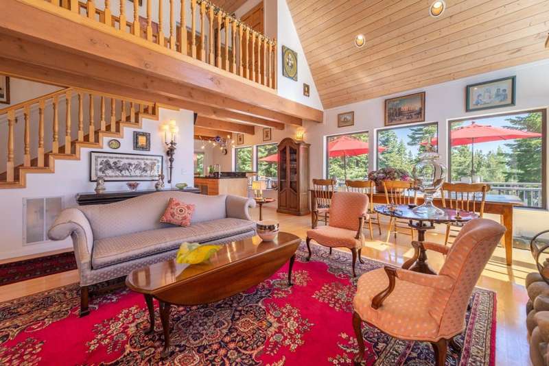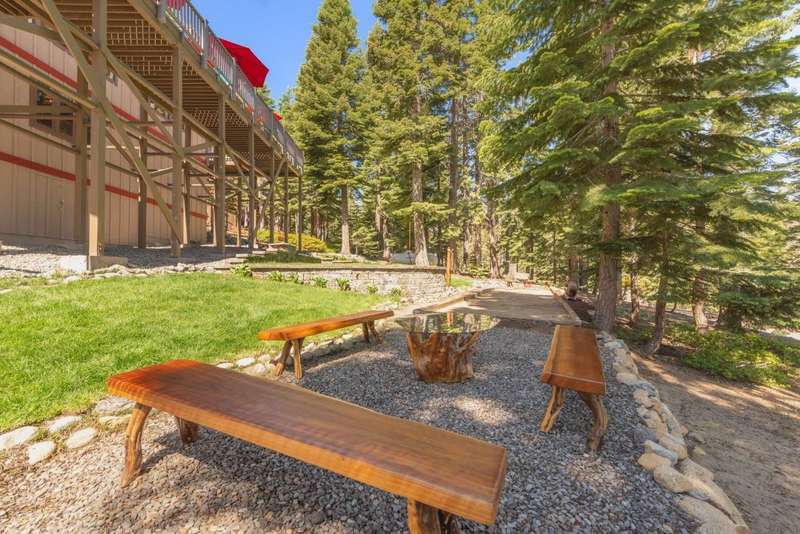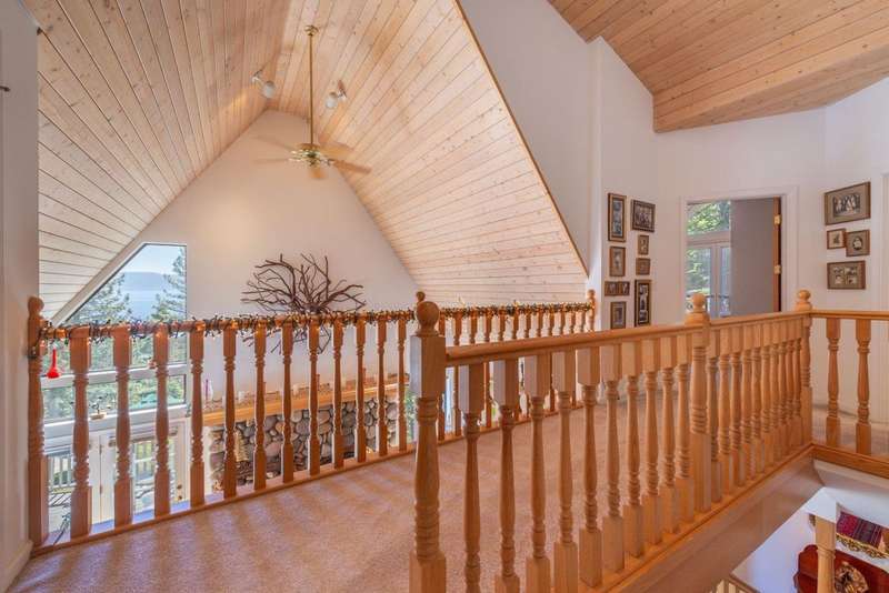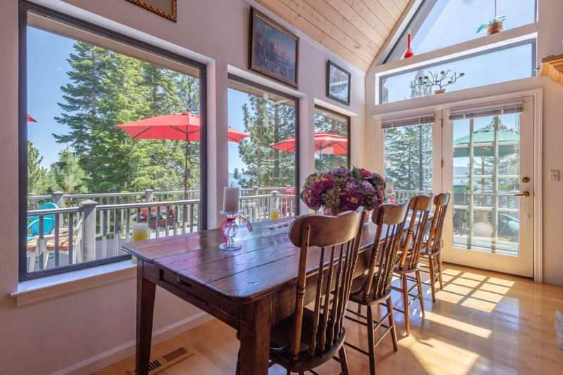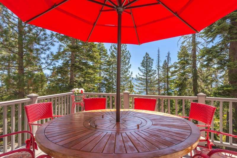 This beautifully appointed 4-bedroom, 3.5-bathroom home is perched above Rubicon Bay, offering breathtaking views of Lake Tahoe. Located within the coveted South Beach HOA, this property provides rare access to a private white sand beach, volleyball court, shared pier, and buoy field. The home's open and airy layout is designed to bring the outdoors in, with vaulted ceilings, large windows, and natural light filling the main living space. A recently remodeled kitchen flows seamlessly into the dining and living areas, creating an ideal setting for hosting or relaxing. A spacious wraparound deck extends the living area outdoors, where you can take in lake views. Downstairs, a large family room with a stone fireplace provides a cozy second living area. A standout feature of this property is the thoughtfully designed outdoor space. The beautifully maintained grassy lawn and bocce ball court offer a rare combination of usable flat yard and fun for family and friends, perfect for summer afternoons and casual entertaining. Surrounded by mature pines, the setting is tranquil, sunny, and inviting. Whether you're seeking a luxurious full-time residence or a lakeview retreat, this property offers elevated Tahoe living in one of the region's most desirable communities.