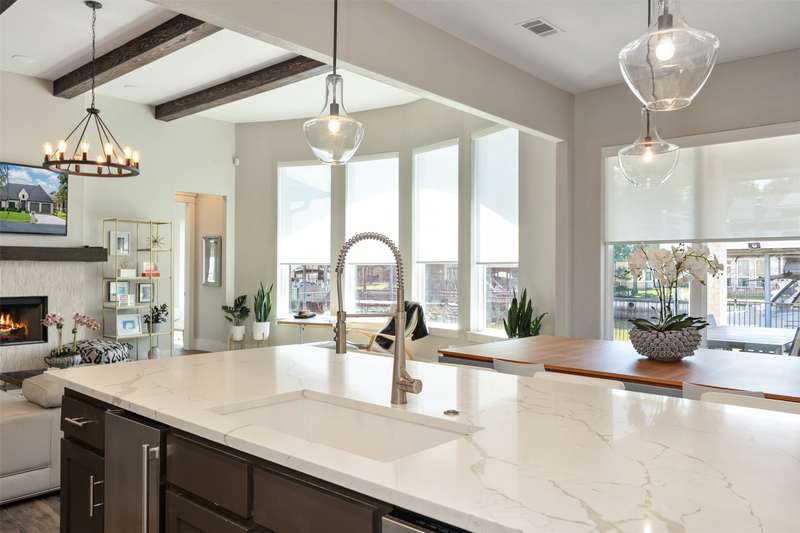 Discover an extraordinary opportunity in the gated Pinnacle Club community on Cedar Creek Lake: a stunning soft-modern 4-bed, 3-bath, 2-car waterfront home AND a coveted golf course lot directly across the street. The golf lot will only be sold separately if the homebuyer chooses not to include itmaking this combination of lakefront living and future golf-course build potential truly one-of-a-kind.Designed for both style and real-life living, this home blends clean modern lines with warmth, comfort, and functionality for family, friends, dogs, and kids of all ages. The open living and kitchen area features soaring ceilings, walls of glass overlooking the water, and solid-surface flooring throughout. A wood-burning fireplace anchors the living space, while the large kitchen offers miles of quartz countertops, an oversized island, abundant cabinetry, a bar area, a massive pantry, and a full-size utility room with a sink.Step outside to a covered waterside patio and wrought-iron fenced backyard leading to a fantastic boathouse complete with a boat lift, two Sea-Doo lifts, and a party deck aboveperfect for sunrise coffee, sunset cocktails, and all-day lake fun.This rare pairing of a luxury waterfront residence and an additional golf course lot makes this a true Pinnacle Club unicornand an opportunity you wont find again. Ready for memory-making and lake-living at its best. Lets make it yours.