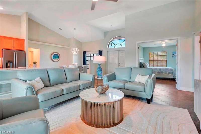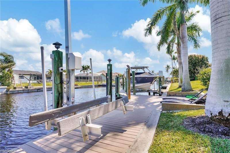 Boater's Paradise Meets Resort Living - Best Priced in the Neighborhood! Step into your dream lifestyle with this TURNKEY Gulf Access Pool Home in the heart of SW Cape Coral-just a 10-minute boat ride to the Caloosahatchee River and beyond to open waters. Whether you're docking a 30+ ft vessel on your newly updated (2022) composite dock with 12K lb lift, or paddling to the Bimini Basin, this home is your gateway to waterfront adventure. Inside, luxury meets comfort: 3 spacious bedrooms + den/office + bonus room, Chef's kitchen with granite counters and sleek tile floors throughout, Spa-inspired master bath with dual sinks, walk-through double shower, and soaking tub! Air-conditioned 3+ car garage with extended depth for all your toys, Mature royal palms and a horseshoe driveway offer curb appeal and ample parking. Outside, it's pure paradise: Oversized resort-style pool perfect for sunset cocktails, No flooding history-peace of mind included! Minutes from Sanibel, Fort Myers Beach, downtown Cape Coral, and the new Margaritaville & Sunseeker Resorts This is more than a home-it's a lifestyle upgrade. Priced to move, packed with upgrades, and positioned in one of Cape Coral's most desirable boating neighborhoods. Don't miss your chance to own this waterfront gem. Call today for your private showing-and start living the dream.