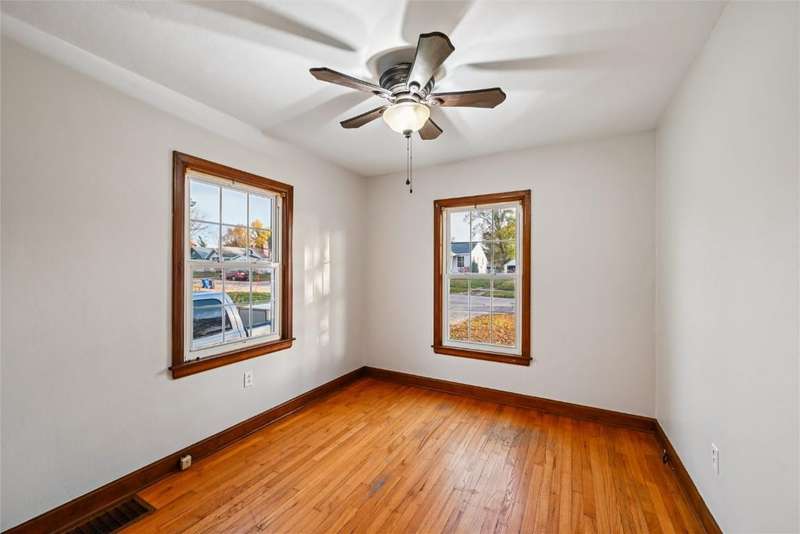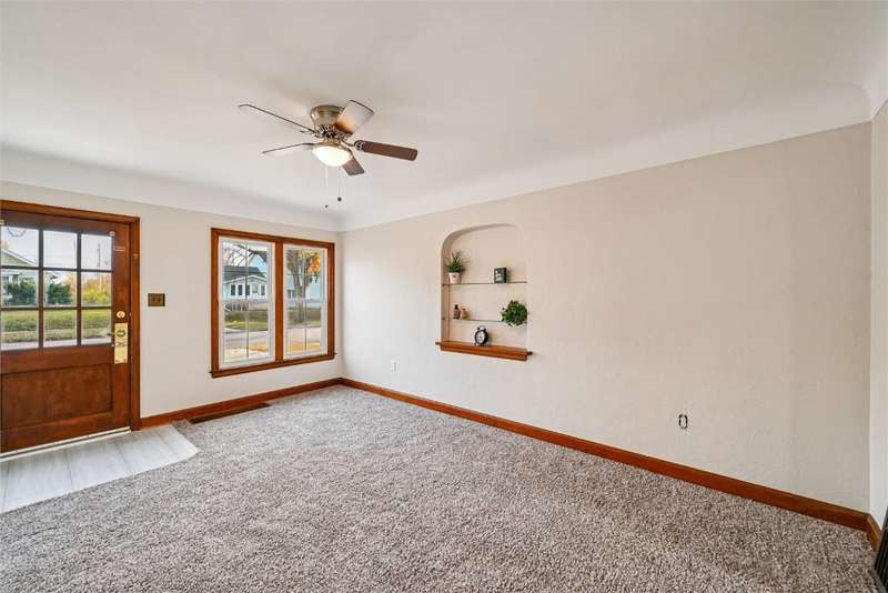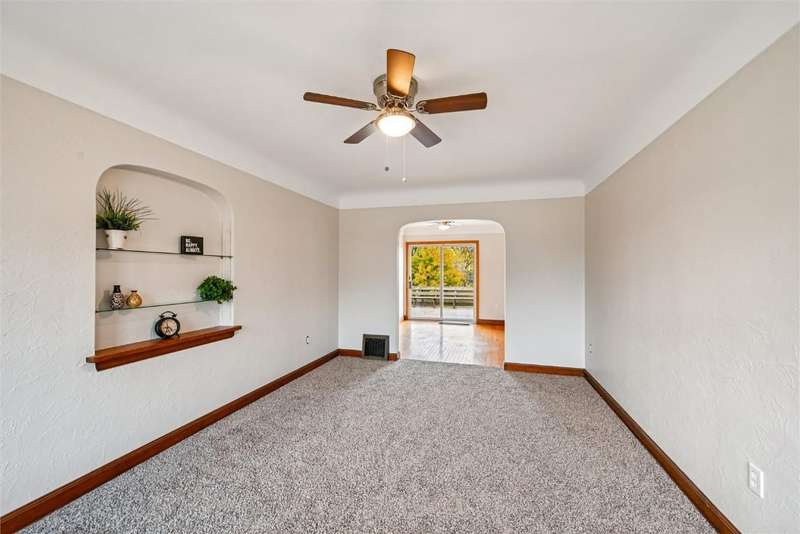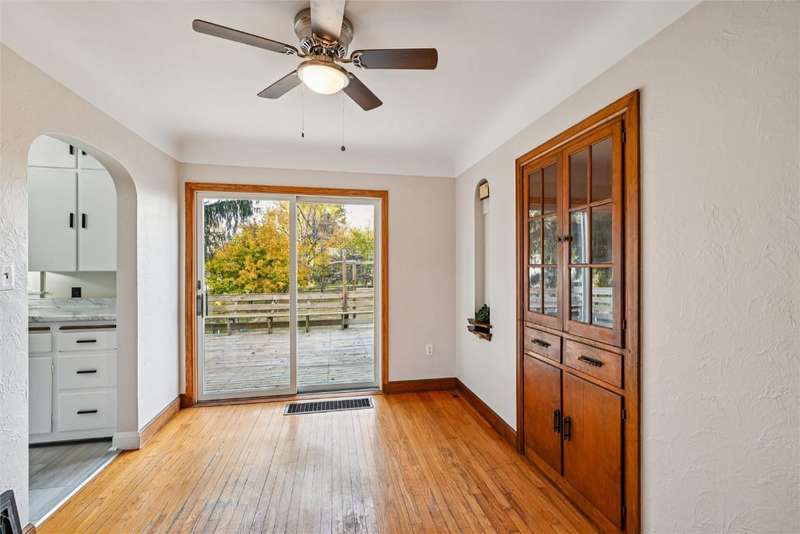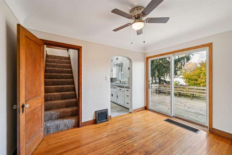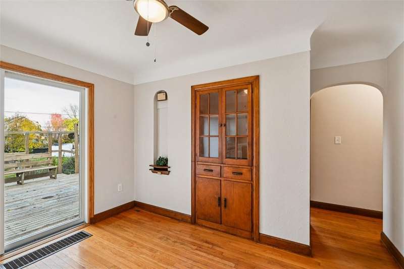 Adorable, sparkling clean 1 1/2 story refreshed, updated and ready for you to call home. Convenient attached garage and double wide driveway for great parking off street. New roof, and furnace in 2021, new front stoop, water heater and some new plumbing in 2023. Huge primary on the second floor, beautiful wood floors and built ins in that area! Great storage and space to relax and enjoy. Main floor has amazing wood floors as well and niches and built ins that have been loved. Basement is clean and dry and great for storage and a walkout door to the large fenced in yard. Large deck for entertaining with steps to backyard and side door. This home is move in ready and easy to show. All measurements per city.