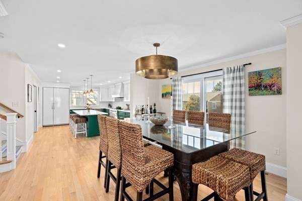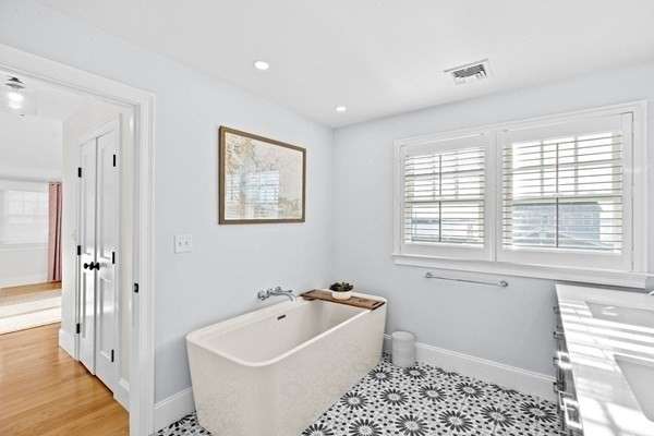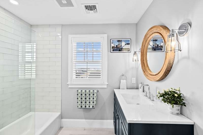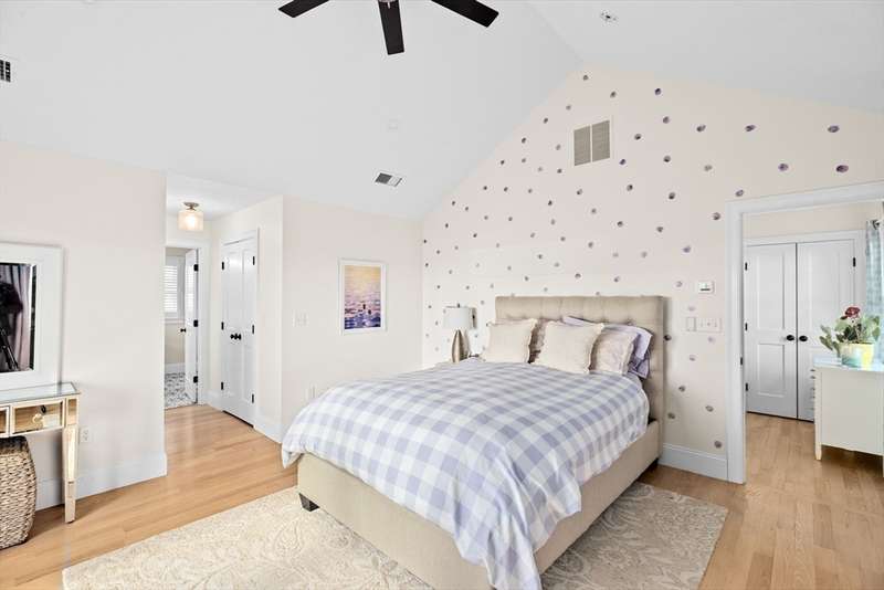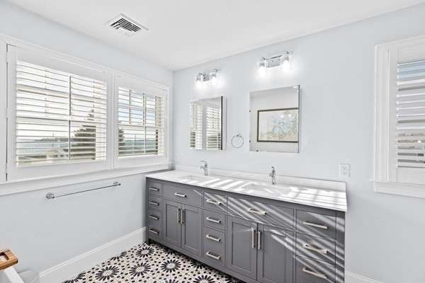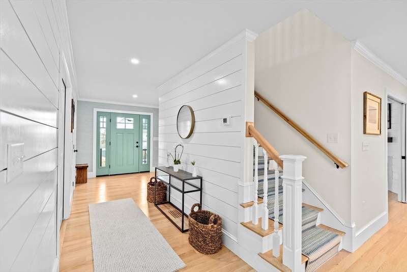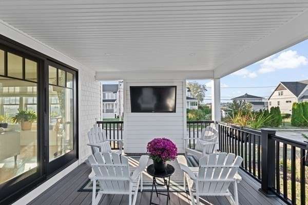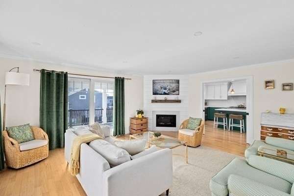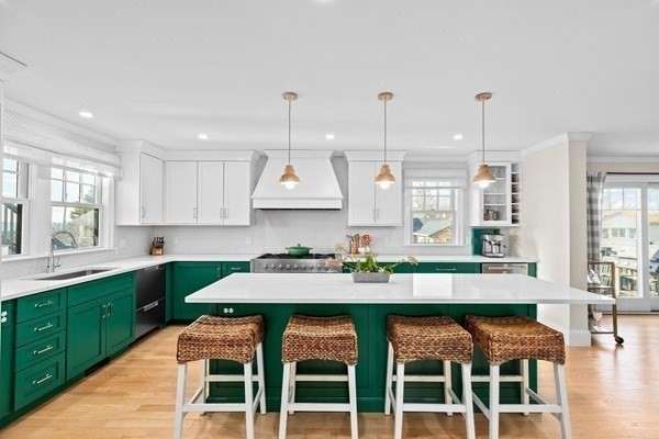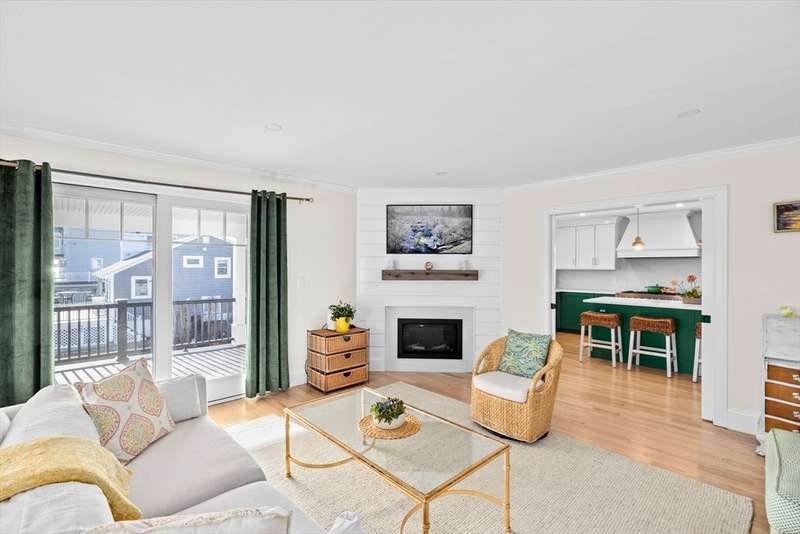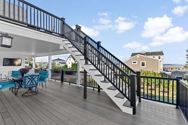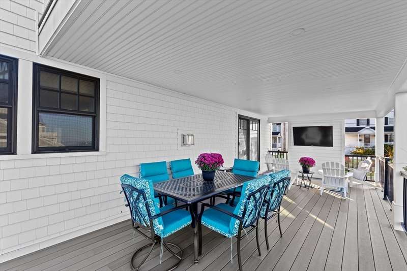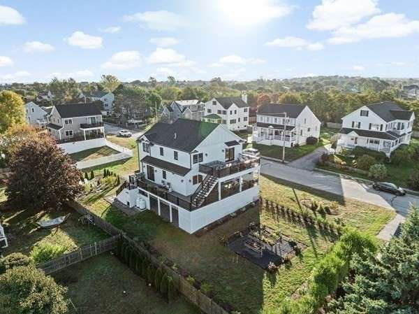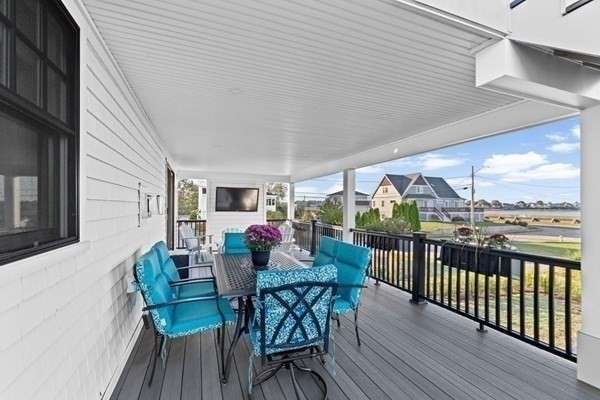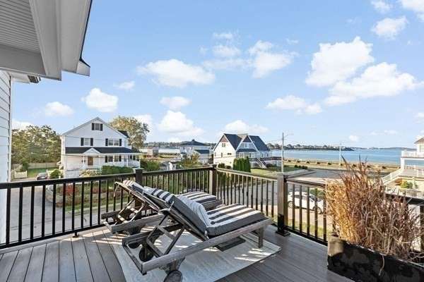 Steps to private Bay Beach.Glorious water views abound from this custom-built, shingle style home perfectly situated in a sought-after coastal neighborhood. Step inside to discover stunning craftsmanship and architectural detail throughout. The bright and airy first floor features an open floor plan with a magnificent chef's kitchen with high end finishes, gorgeous cabinetry, and oversized island opening to a generous dining room overlooking the wrap around deck. Enjoy water views from the fireplaced living room which flows seamlessly outdoors to the spacious deck with beautiful bay views, family room, with office space completes the first floor. The second floor hosts the primary suite with double walk-in closets ensuite bath with elegant soaking tub and tiled shower. Sliders open to the large deck, perfect for enjoying sunsets over the water. Two additional bedrooms, family bath, and laundry complete the upstairs. 500 feet to a coveted bay beach for swimming and kayaking.