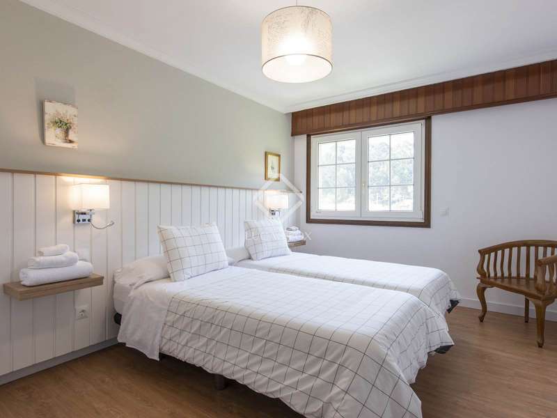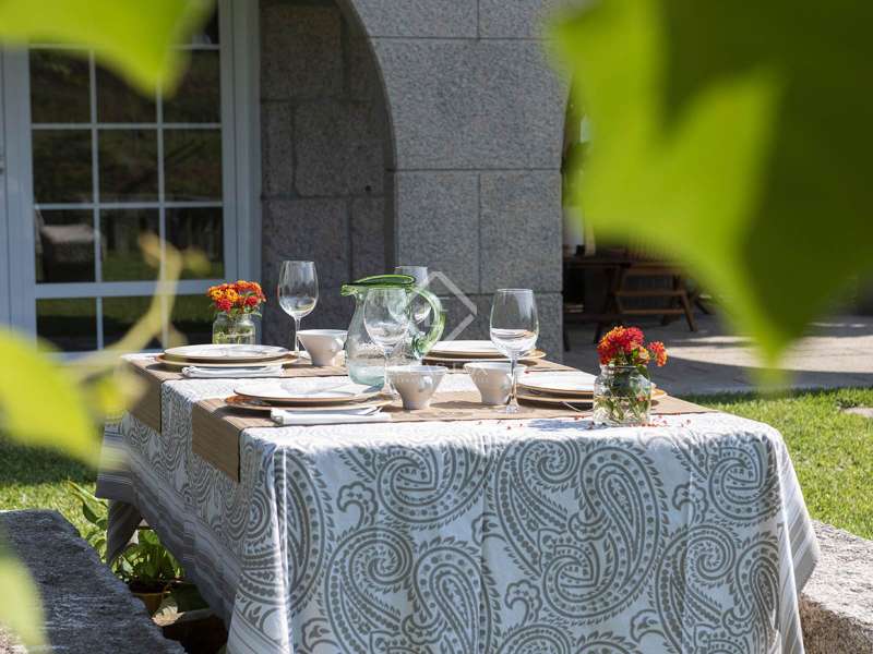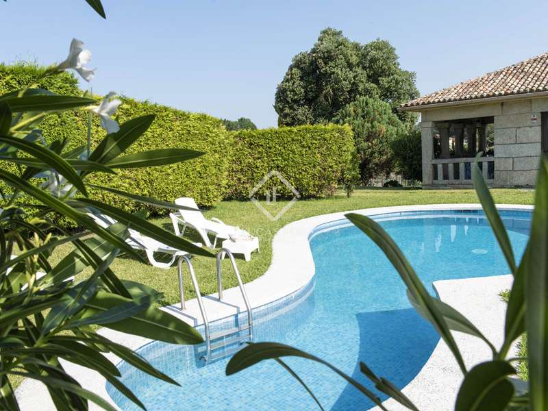 In the area of Gondomar, we find a small village named Donas, where we find this exquisite all-stone villa for sale with three levels of space on a large plot. The property measures just a little over a hectare of land, completely private. We find the large villa, swimming pool, summer dining area, and tennis court on the primary side of the property. The remaining property land is on the left side of the estate, which leads to a small river stream. The land can be used for additional housing (Cabin Type) on farmland. Upon arriving at the property, we are welcomed by a large gate that gives us access to the villa's grand entrance. Once inside, we are greeted by the well-kept front garden area. Inside, we enter the main floor and have the reception area, which distributes the villa's interior to the day and night section. On the left-hand side, we enter the grand living room, ample space with marble flooring, abundant natural light, and a stone-finished fireplace. On the right-hand side, we find the eat-in kitchen area, fully equipped with good appliances, a small dining section, and views of the front garden area. Down the hall from the reception area, we access the sleeping area. We find four bedrooms, two bathrooms and an en-suite bedroom on this floor. On the floor above, where the stairs lead from the living room, we find two bedrooms with their terrace, a library/study and a shared bathroom. We find the family room on the ground floor with a small dining area and a large jacuzzi room. There is also a bedroom on this level and access to the indoor garage area. Here we also find the utility room. This level gives us access to the outdoor porches—a great place to enjoy with family and friends for entertaining. Once outside in the garden area, we have the swimming pool area, offering countryside views. Next to the saltwater swimming pool, we have the summer dining barbecue area. This area is perfect for greeting family and friends and enjoying good times next to the pool and the tennis court on the opposite side. We find the wine cellar underneath the summer dining area. The tennis court needs to be redesigned and repaired. The property features the most recent eco-friendly heating and cooling supply for the property. This property can be attractive for a large family looking to enjoy time together, or an investor looking to purchase the property and convert it into a small guest house. The potential to transform the property into more guests can be possible, but only in cabin-like spaces. A project needs to be presented.