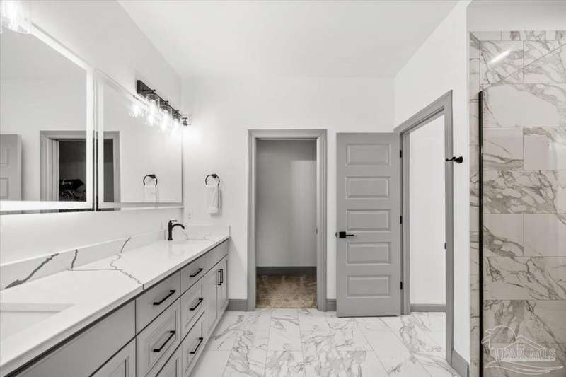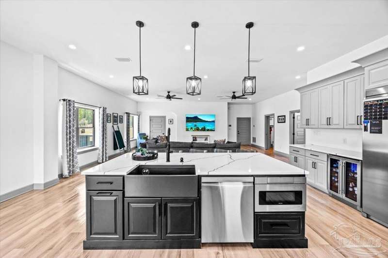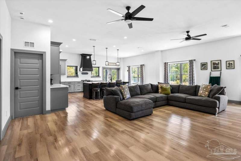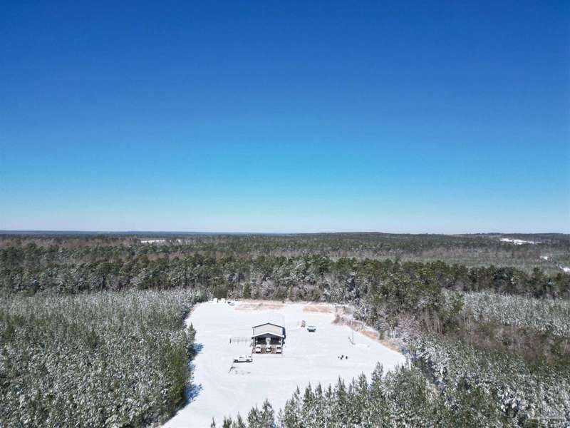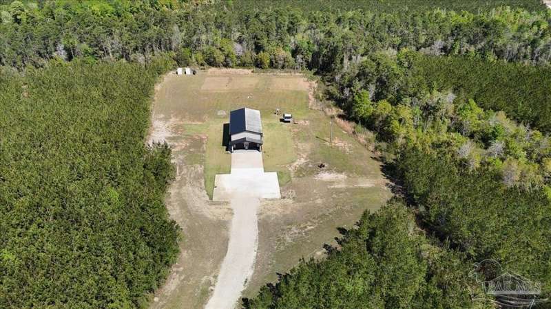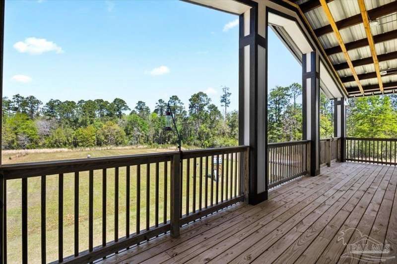 Welcome Home! This high-end, custom barndominium was built in 2023 and is 4,580 SQFT under roof. It has 3 bedrooms // 3 bathrooms and sits on approximately 15 beautiful acres! It has an open living/dining floor plan on the main level, with a guest bedroom and a full guest bathroom, as well as a spacious laundry room with built-ins and a walk-in pantry with counter space and built-ins. Upstairs features a second living area, a master suite, an additional guest bedroom with its own private bathroom, and a 677 SQFT walk-in storage area with plumbing/electric/spray foam insulation. There is also an oversized two-car garage with spray foam insulation, a covered back patio, and a covered balcony. All bedrooms have walk-in closets and there is also a closet under the staircase. Large windows and glass doors are throughout the home, creating an abundance of natural lighting! Additional features include ceiling fans in every room, deep window sills, recessed LED lighting, a camera system, a security alarm, built-in wiring for a generator, a Hybrid hot water heater, two HVAC systems, and AT&T high-fiber optic internet. Kitchen boasts a large island with bar seating and storage underneath, Quartz countertops, a farmhouse sink, plenty of soft close drawers and cabinetry, a roll-out microwave, a range, stainless steel appliances (dishwasher, stovetop/oven, and an industrial sized refrigerator/freezer), and a beverage refrigerator. Exterior has a parking pad (prepped as a half basketball court!), a crushed concrete long driveway, a garden, flood lights, a sprinkler system, gutters with a pop-up drainage system, a pump house, and more! Come experience nature + wildlife, exquisite sunrises + sunsets, peacefulness + privacy - All while staying in Pace and being close to town! You'll enjoy quality family time and hosting your guests at this one-of-a-kind homestead! Home has only had one owner and the local builder paid very close attention to detail throughout the entire process!