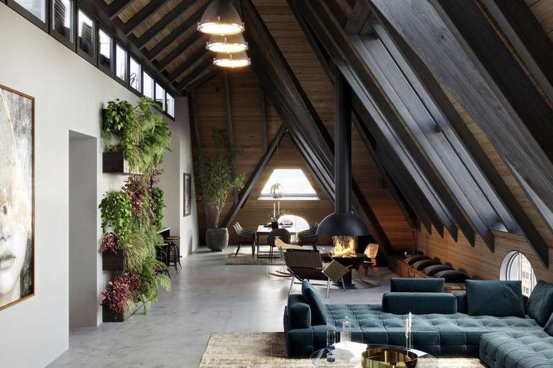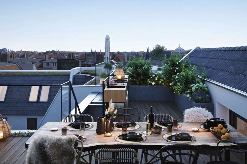 Above the rooftops of Berlin: luxury penthouse by Swen Burgheim. The unique penthouse with a ceiling height of approx. 5.50 meters, gallery level, roof terrace and elevator directly to the apartment is certainly one of the highlights ever developed by the designer and architect Swen Burgheim. A unique living concept in loft style with an open floor plan, large window fronts and light-flooded rooms is being created on approx. 300 m². A glazed elevator in the inner courtyard of the apartment building takes you directly to the penthouse with a key. The apartment has a total of five rooms, with a central living/dining area, two bathrooms and a guest WC. The spacious living area, with an area of approx. 114 m², offers plenty of room for socializing and private moments with an open kitchen adjoining the lower terrace, an open fireplace, a dining area in the bay window and a huge seating area. The kitchen, specially designed for this property, is located directly on the lower terrace, from which you can access the approx. 40 m² roof terrace. From here you have a wind-protected 180° view of the City West. From the adjoining dining area, which is located in the bay window of the roof, you have a beautiful view of the street line of Uhlandstrasse. The open fireplace in the middle, between the cooking and dining area and the living area, invites you to linger after dinner. On one side of the approx. 5.50 meter high roof ridge is the master bedroom with en suite bathroom and separate toilet on one side and a wellness area with sauna and terrace on the other. A hallway from the dining area leads to two further bedrooms with a bathroom, which both rooms share. Let yourself be inspired by Swen Burgheim's architecture and his unique living worlds during a joint viewing.