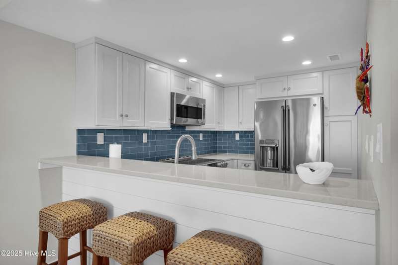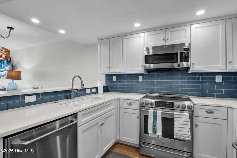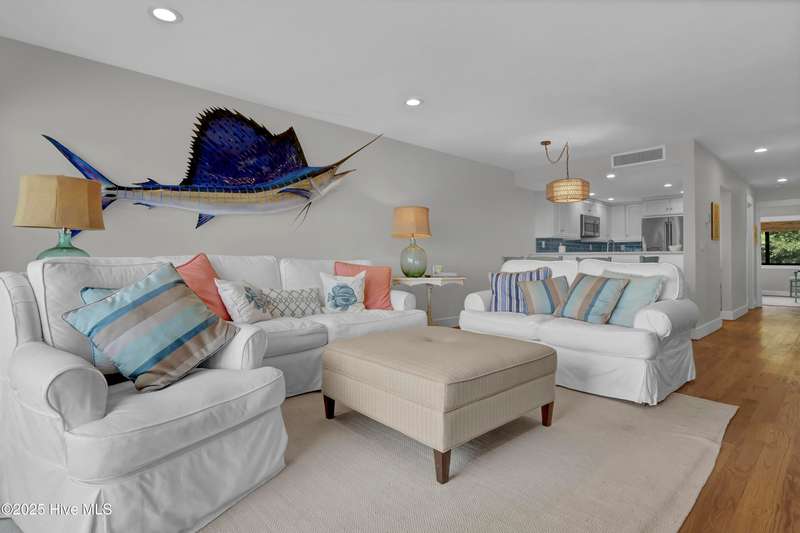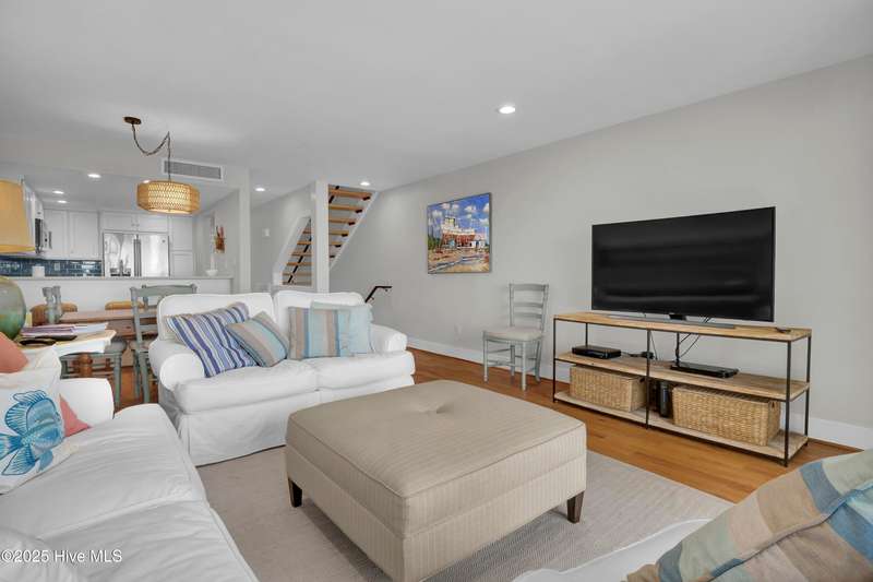 Thoroughly renovated in 2015, this 3 bed 3 bath ocean front townhome at Station One, shows beautifully. Designed with elegance and comfort in mind, the townhouse features high end finishes including quartz countertops in the kitchen; hardwood floors in all living areas and 2 baths; and custom tile backsplashes. The open concept dining and living rooms open to an ocean front deck and also overlook a large and fenced in common lawn. The ground floor offers a full garage, carport area, an outdoor shower and additional covered deck. Station One offers several wonderful amenities, including a large pool, tennis / pickle ball court, grilling area and onsite security. Within easy walking distance to the shops, restaurants, and nightlife of Wrightsville Beach.