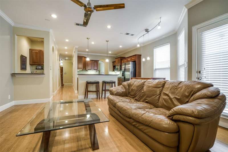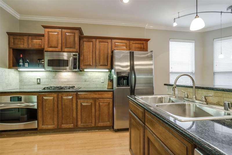 Beautiful, two-story, 3 bedroom, 2.5 bath single family attached in Cochran Heights near the Knox-Henderson restaurants & retail. Kitchen features granite counters, large island, stainless appliances & dark wood cabinets, and opens to the living room with gas fireplace & wet bar. Large master suite has dual sinks, jetted tub, separate shower & walk-in closet. Front & side balconies & covered patios. 2-car garage & driveway with gated entrance. Refrigerator, washer and dryer included. Close commute to Uptown and Downtown.
