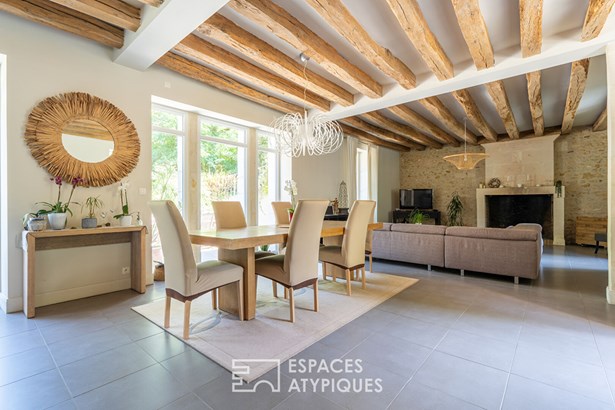 Exclusive to Espaces Atypiques Blois In the heart of a green setting, lulled by the soothing murmur of its millrace, this charming property is built around a restored old mill, accompanied by several outbuildings, for a gentle and inspired life, between nature and history. The main mill, subtly renovated, rises on three levels. From the entrance, the warm living room with open kitchen invites conviviality. A hallway, equipped with storage and an elegant wooden staircase, leads to the spaces on the ground floor: a laundry room, separate toilet, and a comfortable bedroom with private bathroom. The layout is fluid, functional, designed for daily use without compromising on charm. Upstairs, two suites, each with their own dressing room and private bathroom; offer privacy and comfort. A bright billiard room completes this level, ideal for extending the evenings in a cozy atmosphere. Below, the basement houses two additional rooms, a boiler room, and a cellar, providing welcome technical and storage space. As a counterpoint to this main building, a second, independent house now houses a charming living room, as well as a kitchen, a bedroom with a shower room, and a toilet. An adjoining section remains to be restored, revealing great development potential. Set aside, a separate guest house seduces with its living room opening onto a waterfront terrace. The setting is green, serene, conducive to contemplation. Upstairs, a bedroom with a shower room completes this cocoon nestled in nature. A double courtyard provides shelter for vehicles or allows for outdoor entertaining, in a friendly, rural atmosphere. On the garden side, a heated swimming pool with a motorized shelter nestles discreetly in the landscaped grounds, designed as a natural extension of the surrounding calm. The omnipresent water envelops the property in a poetic and soothing atmosphere. A rare property, at the crossroads between heritage and the good life. For lovers of unique places, in search of a timeless refuge, conducive to inspiration, transmission and hospitality. ENERGY CLASS: / CLIMATE CLASS: Estimated annual energy cost for standard use between EUR and EUR. Average energy prices indexed for the years 2021, 2022, 2023 (subscriptions included) Contact (EI): Margaux Garanne: 07 70 18 84 04 Sales agent RSAC 930189519 Fees are payable by the seller Information on the risks to which this property is exposed is available on the Georisques website for the areas concerned: www.georisques.gouv.fr