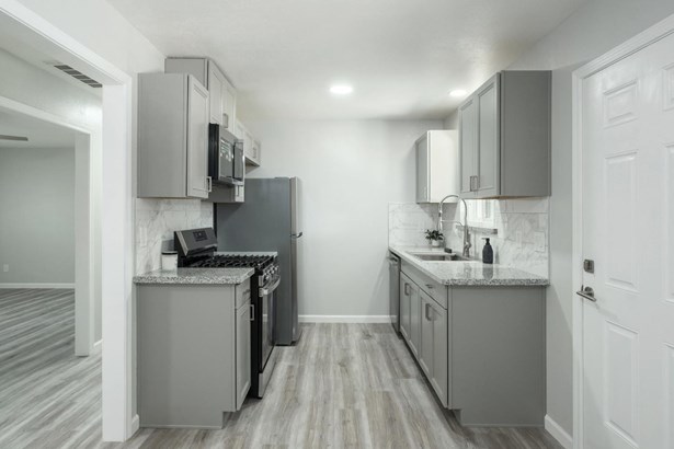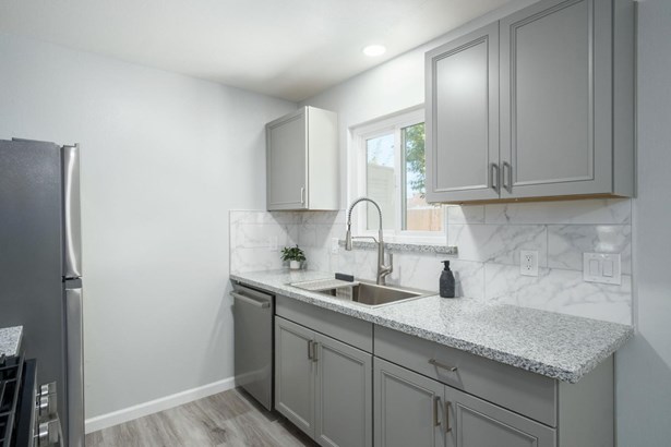 Charming, Updated, & Move-In Ready! This stylish single-level home features 4 bedrooms & 1.75 bathrooms, showcasing modern upgrades you will appreciate. The freshly updated kitchen boasts new cabinetry, new counter tops, updated appliances including a gas range, and a spacious stainless-steel sink thoughtfully placed beneath a window overlooking the backyard. Enjoy brand-new vinyl plank flooring throughout, fresh interior & exterior paint, and new interior doors with sleek modern hardware. Both bathrooms have been upgraded with new vanities and contemporary details, including a rain-style showerhead and detachable handheld sprayers for added versatility. Outdoor living includes a covered front porch perfect for morning coffee and a generous sized backyard with a large covered patio featuring 2 ceiling fans, great for gatherings. The front & back yards are equipped with automatic sprinklers to keep the landscaping looking good. This property also offers RV parking and new fencing. Conveniently located near a park, schools, shopping, & dining. This home is a must-see!