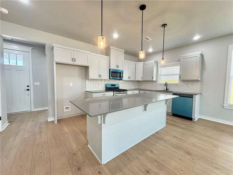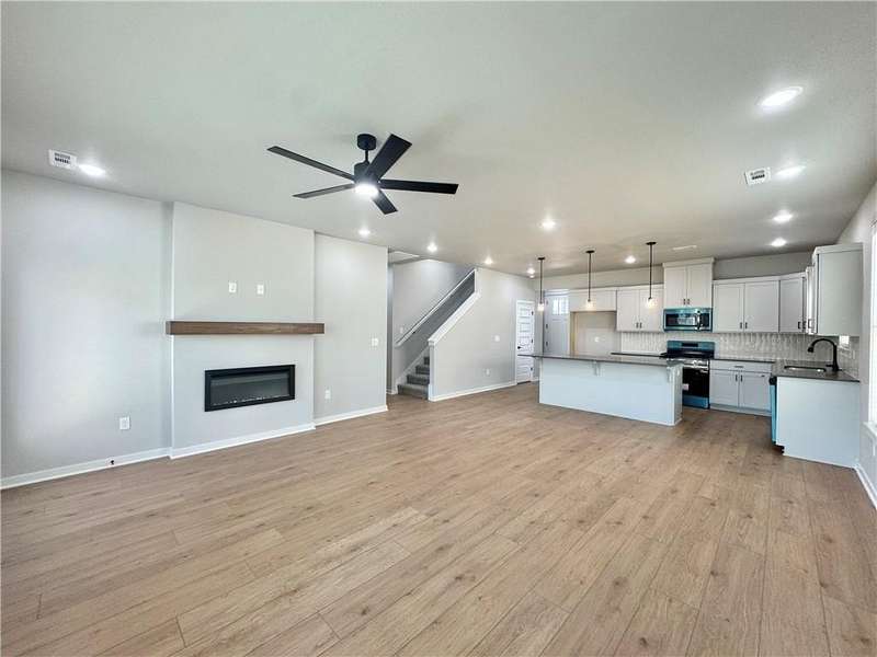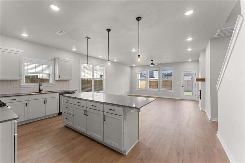 Fence, blinds and gutters included! Discover your dream home in the sought-after Osage Hills neighborhood. Delta plan with garage on the right and North facing! 9 ft ceilings, linear electric fireplace in the living room, LVP flooring throughout the main living areas and primary bedroom, quartz countertops and more. Chef's kitchen boasting frigidaire stainless steel appliances, gas range, pantry, quartz countertops, bar pull handles, large island and gorgeous backsplash. Luxurious primary bedroom features abundant natural light, while the spa-like primary bathroom offers a walk-in shower, tub, double sinks, and spacious walk-in closets. Additional features include a study on the main level, two large secondary bedrooms upstairs and a separate laundry room. Nestled on a generous lot with covered patio that overlooks the serene sodded, fully fenced backyard. Sturdy concrete siding & brick! Model home located at 6008 SW Coywolf St- Lot 122.