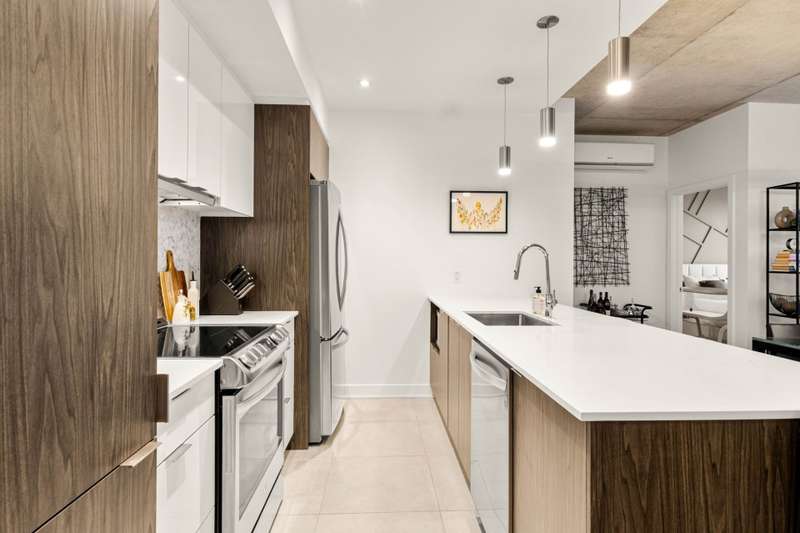 Discover modern luxury in this exceptional 2-bedroom, 2-bathroom condo in the highly sought-after Le Quatrieme development in Dorval South East. Perfectly situated in a peaceful area just steps from Lac St-Louis, the bike path, and a full range of commercial and municipal services. You'll also be minutes from elementary and high schools, parks, public transit, the Dorval train station, the REM, and Highway 20.