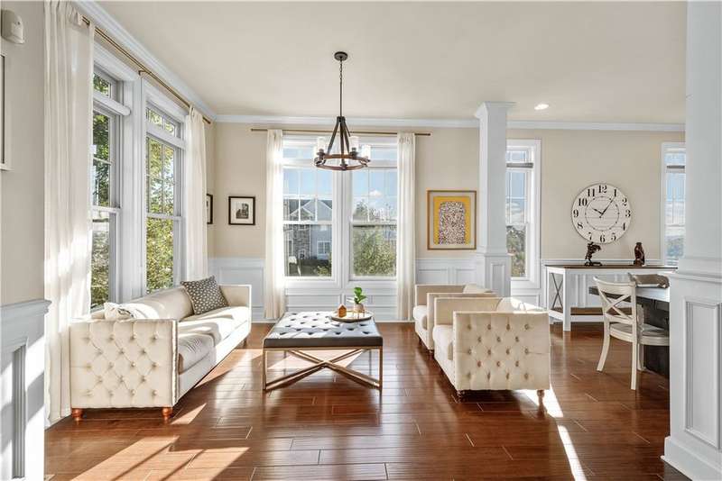 Welcome to 1098 Gromwell Lane located in the desired Newbury commuity of South Fayette. This 4 Bedroom 3.5 Bathroom home features an open main level floorplan with 10ft ceilings, tons of windows and plenty of natural light. Enjoy the stunning views from the back deck and spacious front porch or the flat fenced in backyard. The Den on the first floor could also be used as a guest bedroom complete with full bathroom. Newbury features sidewalks and community park which is steps away. This home is convienently located close to Newbury Market shopping, access to 79, and much more!