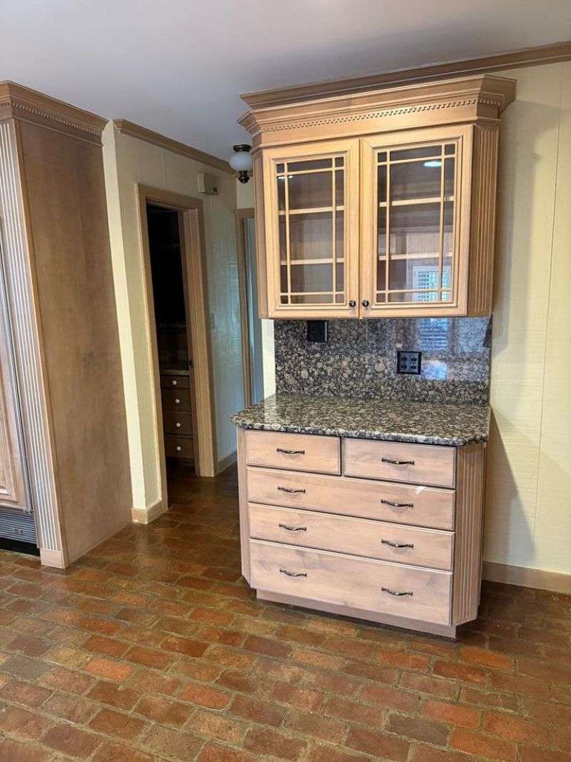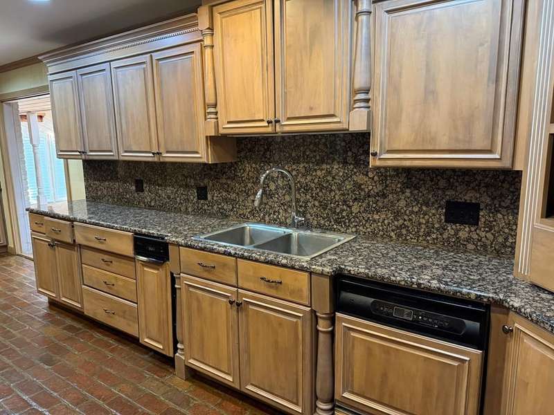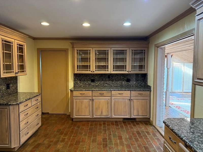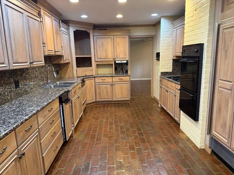 Nestled in a quiet, sought-after neighborhood, this custom-built home exudes charm and sophistication. The interior boasts unique brick flooring, lending warmth and character throughout. The expansive den features sweeping ceilings, creating an open and airy atmosphere perfect for relaxation or entertaining. The updated bath serves as a private retreat, complete with a luxurious soaker tub, ideal for unwinding after a long day. The kitchen is a chef's dream, equipped with built-in appliances and thoughtfully designed for both functionality and style. Step outside to your private oasis, where a sparkling in-ground pool awaits, surrounded by serene landscaping. Full house generac system and irrigation. This home offers the perfect blend of comfort, elegance, and modern updates?truly a must-see!