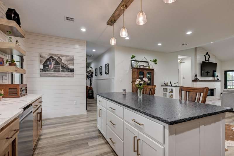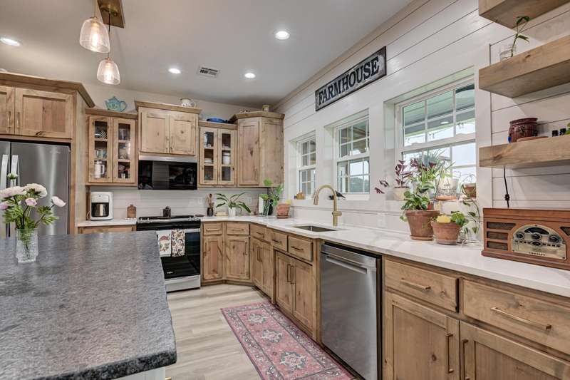 4160 Sq Ft CUSTOM Barndominium on 10.9 Acres - Home Features*3 bedrooms, 2.5 baths*2,160 sq ft of modern living space*Split-bedroom floor plan*Expansive great room combining kitchen, dining, and living areas*Luxury vinyl plank flooring throughout*Soft-close cabinetry with granite & quartz countertops*Walk-in pantry*Dedicated laundry room*18' x 16' primary suite with spacious ensuite bath & large walk-in closet*Abundant storage throughout*All-electric, energy-efficient build with rural water*Attached Shop*2,000 sq ft climate-controlled shop*Perfect for hobbies, work, or storage*Outdoor Living*Full-length covered back porch*Screened-in sitting area*Enclosed mancave for hobbies or entertainment*Property Highlights*10.9 acres in desirable Newton County, just south of Joplin*30' x 40' machine shed*6-strand barbed wire fencing*Gated entrance for privacy and security