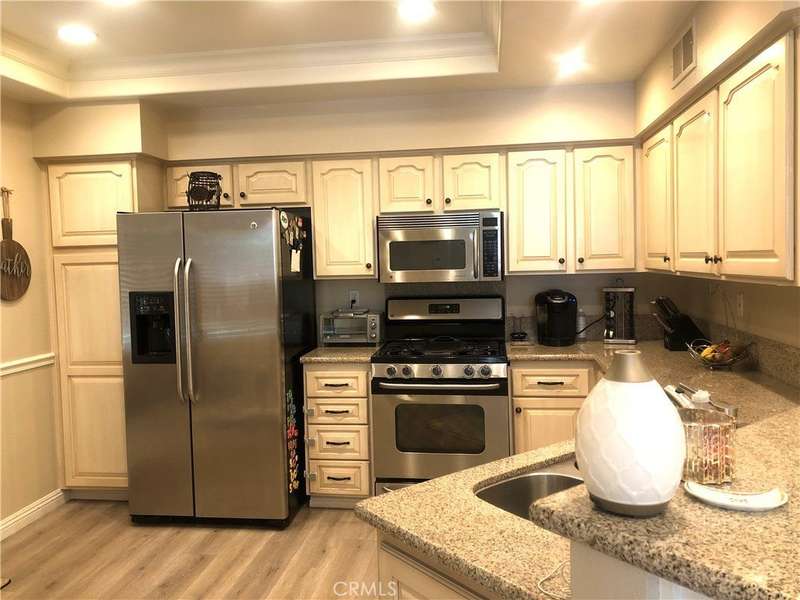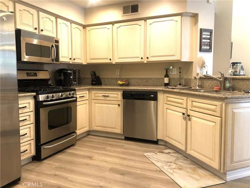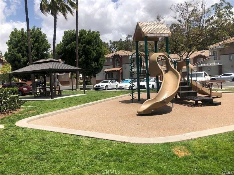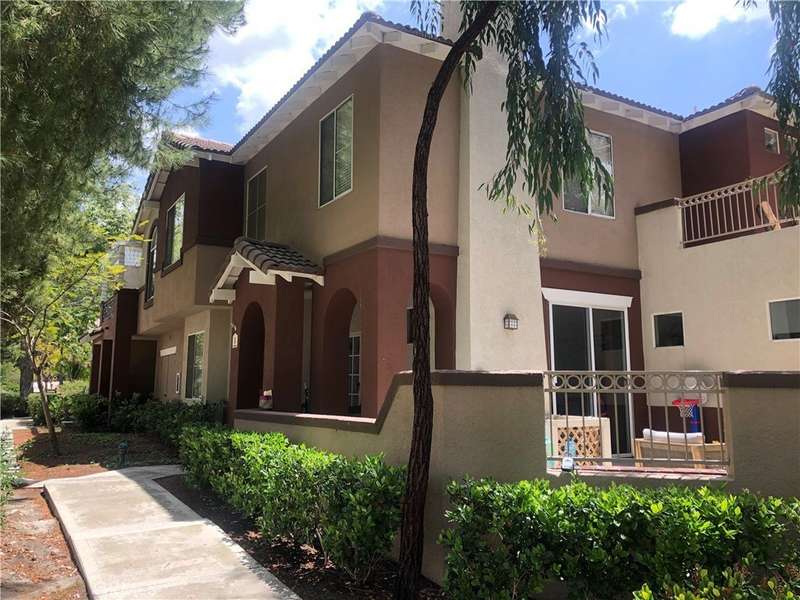 Occupying a nice corner in a serene tree-line setting of the Vineyards community, this beautiful townhome offers both the luxurious living and views of the nature. 3 bedrooms, 2.5 baths, 2 car garage with a direct access to the unit. Bright and inviting, the living room boasts high ceilings, a fireplace, and a glass slider to patio. The upgraded kitchen includes granite countertops, antique white cabinetry, all stainless steel appliances, bar sitting, and a lovely built-in bench below the kitchen window. Well appointed master suite with high ceiling, a walk-in closet, ensuite bath with dual sinks, newer shower doors, and skylight. Beautiful ceiling fan on the hall upstairs, controlled by a remote. One secondary bedroom has mirror closet and the other one has a cute built-in bookshelves by the closet. Individual laundry room with storage cabinets. Brand new water heater. Newer paint in the living room, dining room, powder room, and the master bath/walk-in closet. Newer flooring, including the beautiful luxury planks in both master bath and hall bath and entire downstairs. Whole house re-piping done in 2022. A brand new thermostat. Newly painted baseboards. A fully fenced patio--plenty of room for your patio furniture and flower pots! Beautiful views from every room of the home! Steps to the tot playground and gazebo. Enjoy the HOA pool, spa, and picnic areas. Award winning schools. Within walking distance to shops, dining, and movie theaters. Short distance to parks and Whiting Ranch Wilderness Park for hiking and mountain biking. Close to the 241 toll road. Short drive to the Irvine Spectrum. Small pets are considered! A must see! Don't miss out!