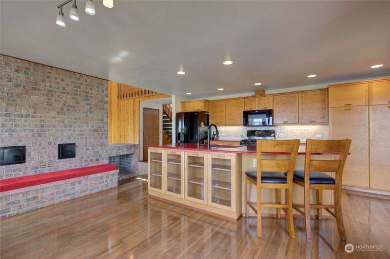 Panoramic views of the Olympics, Bay, morning sunrises, & a front row seat to all of the wildlife occupying the lagoon. This home is beautifully situated to enjoy the incredible nature surrounding us, & the property is also landscaped & has a fully fenced back yard. Inside the home, a centrally located Russian fireplace rises to vaulted ceilings. Home has many accessibility features, a walk-in bathtub, over-sized shower, wheelchair lift inside garage to main home, chair lift on staircase to second floor, among other details. Other features are ductless heat & AC, custom kitchen cabinets, pine paneling in living area, new roof & skylights, beautiful decks front & rear, & RV pad w/all hookups! This well-kept home has much to offer!