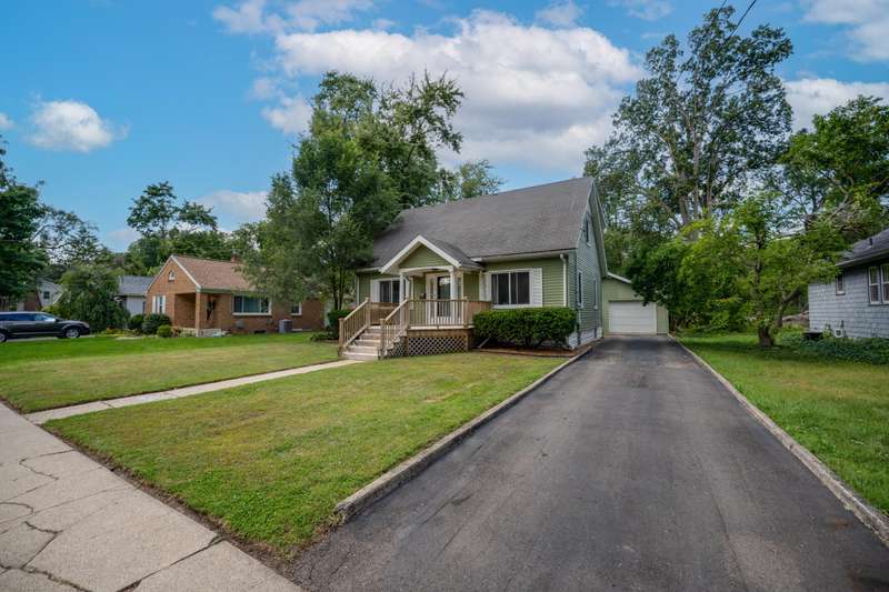 Tradition meets refashioned living in this updated, Milwood, 3 bed, 2 (full) bath cape cod. Crisp and clean throughout, allows you to move right in. Enjoy the upper primary suite w/its large full bath, sitting room and sizable landing. Rich hardwood flooring spans the main level. Enjoy the bright living room lit up w/large replacement windows. 2 main level bedrooms share a spotless updated bath. The charming kitchen has niche storage, and a bright, delightful breakfast nook. Retreat to your finished basement for a movie, a game, or a workout. Warmed by a gas log fireplace, tucked into a corner leaving plenty of room for fun. A clean & bright laundry area features great storage space too. If it's outdoors you'd like to be, relax in the terrific concrete covered porch or the huge, pebbled fire pit station behind the garage. You'll find the fenced back yard is pleasantly large. Kalamazoo Promise qualified, and close to shopping, schools and highways.