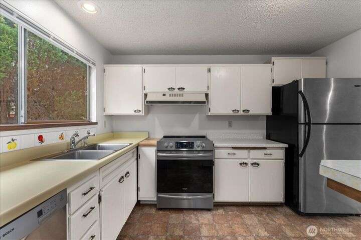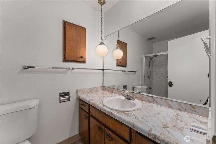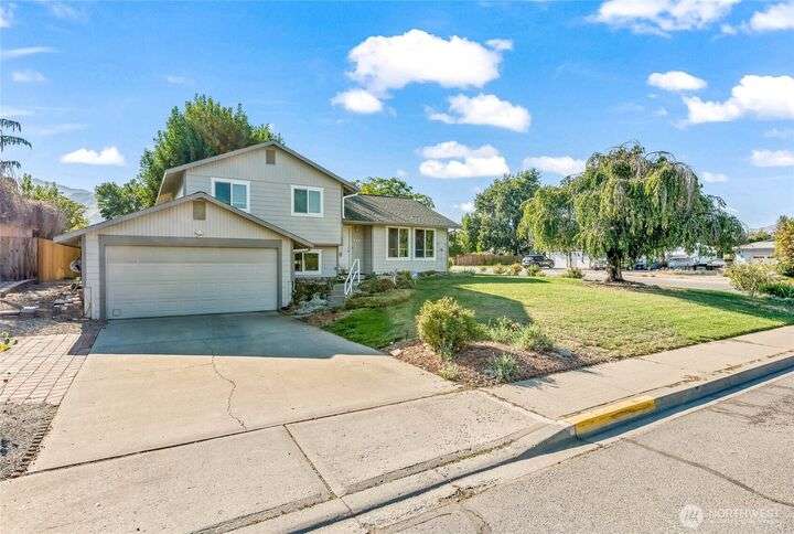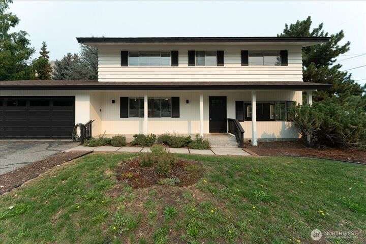 This classic 2-story home is in the heart of Wenatchee - just minutes from both shopping and recreation. Outside you will find fresh paint, a welcoming front porch, lots of extra parking, and a very private back yard for gathering. The interior has new paint, window blinds, floor coverings, updated kitchen appliances, and a new heat pump in 2024. The main floor features a large living room with fireplace for cozy evenings, spacious dining room with room for everyone, and a wheelchair accessible bath that leads to a separate recreation room for maximum possibilities. There are also zero steps from the attached 2-car garage into the home. The upper level has four generous bedrooms including a primary suite with attached 3/4 bath.
