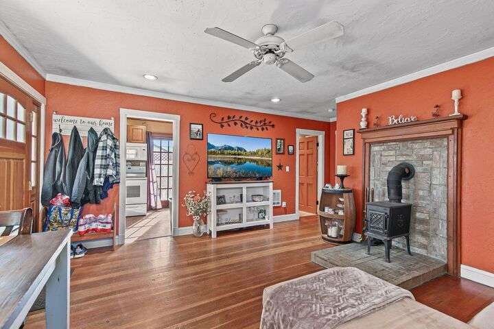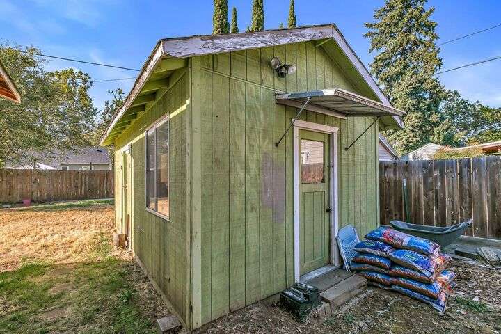Adorable 2 bedroom, 2 full bathroom home conveniently located in Medford! Cozy living space with hardwood flooring, woodstove, and an efficient kitchen. Unlike most homes of this size, there is a vast laundry/utility room with tons of additional storage and a master suite which includes the second bathroom and large closet. Outside, you'll find the covered patio area perfect for entertaining, as well as an immense backyard with storage shed.