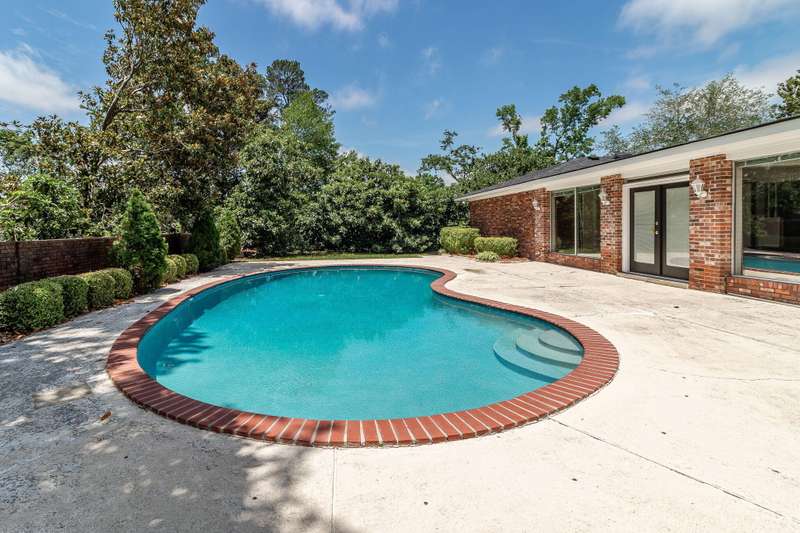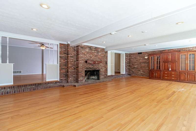 REDUCED TO 625,000. Brick ranch on Walton Way with a NEW roof and 2 NEW HVACS! Come take a look at this great home on a flat .69-acre lot with a gorgeous brick wall surrounding the property and a circular driveway. Enter through the front door and immediately notice the unique flagstone flooring that continues down the hallway to the bedrooms. A spacious living room and dining room, with gorgeous hardwood flooring makes for a great space for large family gatherings. The kitchen is also a great size with plenty of white cabinetry, granite countertops, hardwood floors, an island with stainless hood and walk-in pantry and double ovens. The space is bright and airy complete with breakfast room surrounded by windows. There is a full bath and office/flex space on this side of the home. Enter the large den with a fireplace and built-in shelving. Step down into the huge family room with large windows overlooking the spacious backyard and gunite pool. This space opens up to the office/flex space making it a unique configuration, great for a large family or perfect for a big gathering! From the family room you enter the flagstone hallway leading to the spacious primary with on-suite bath and walk in closet. The 2 other bedrooms share a hall bath, one bedroom is open to this bath. The backyard is beautiful with the brick wall and mature landscaping. A great space to entertain family and friends around the gorgeous pool. Upgrades: New roof, 2 New HVAC's, New pool pump, New Flo by Moen Smart Water Detector. Come make this beautiful home yours with some cosmetic updating to reflect today's living. Home Sold AS IS.