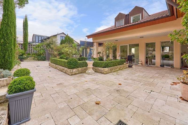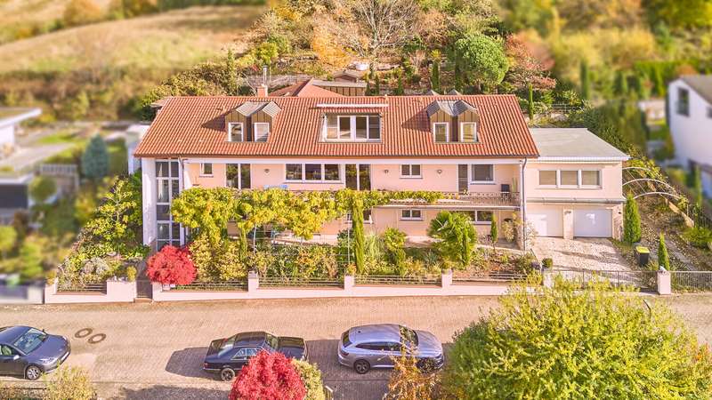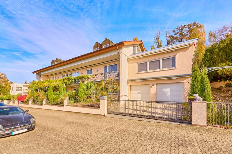 This exclusive dream home with indoor swimming pool in the Auerbach vineyards impresses with features that meet all requirements in every respect. You can feel the special atmosphere as soon as you enter the house: light-flooded rooms, open floor plans and clear, timeless architecture create a harmonious feeling of living with generous space. Three fully self-contained residential units are spread over a total living space of approx. 548 square meters, which are conveniently and barrier-free connected by an elegant elevator system. Each unit offers its residents individual retreats combined with high-quality living comfort - ideal for multi-generational living and working or as an investment. On the first floor in particular, floor-to-ceiling windows open up views of the garden and allow indoor and outdoor spaces to merge. The garden, designed with great attention to detail, exudes a wonderful Tuscan flair. Various levels and different plantings make every gardener's heart beat faster. The entire house is characterized by high-quality materials, elegant surfaces and a consistently well thought-out interior design. Each residential unit has a modern fitted kitchen with high-quality appliances as well as spacious living and dining areas that lead directly onto the terrace or balconies. Several parking spaces and a spacious double garage round off the offer. This well-kept residential ensemble in Auerbach is truly unique: a stylish combination of luxury, nature and functionality. Ideal for families, investors or people looking for something special - with space for generations, guests or home offices in the most exclusive location. A place where living becomes a way of life.