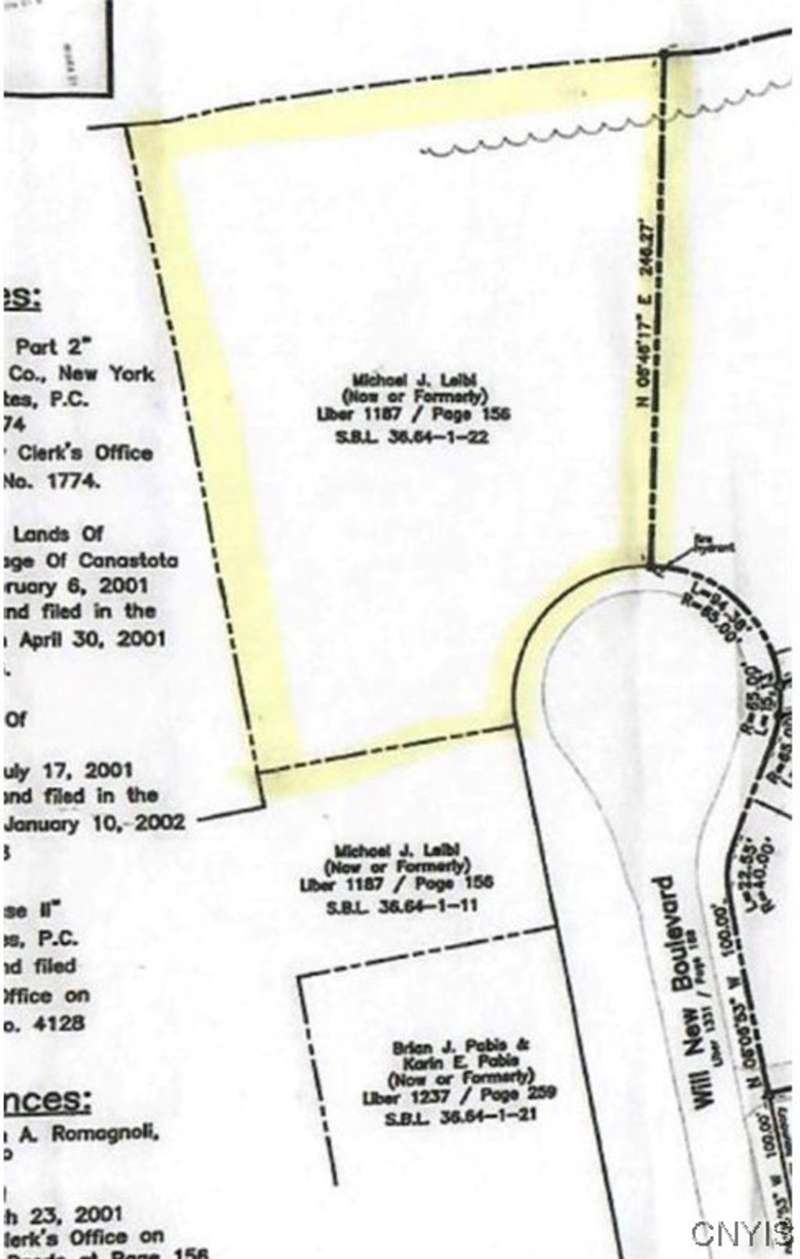 Welcome to an exceptional 1.5 -acre parcel in the charming village of Canastota, where possibilities meet convenience. This unique land opportunity presents a blank canvas for your vision of home. Build your dream residence, invest in the future, or simply enjoy the beauty of having ample space in a desirable location.The canvas is set for your dream home or investment project. The parcel is sloped for a possible walk out and is backed up to a woods for privacy. Surrounded by newer builds, this lot offers the perfect opportunity to join a community that values modern living. You can also embrace the spaciousness of this 1.5v-acre parcel, allowing ample room for landscaping, outdoor amenities, or even a private retreat you dreamed of. Whether your destination is Syracuse or Utica, the convenience of being minutes away from the NYS Thruway makes commuting a breeze and still enjoy the tranquility of village living without sacrificing connectivity.
