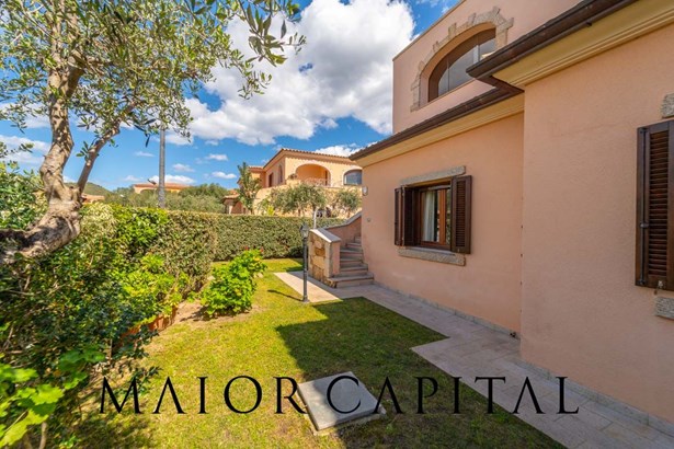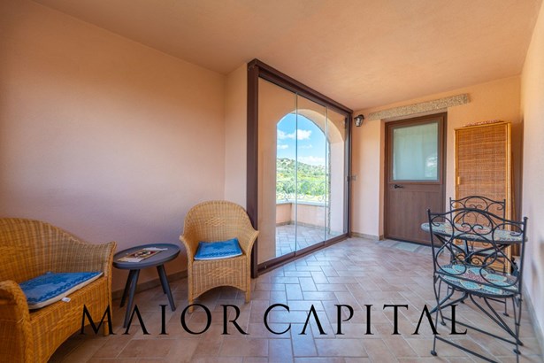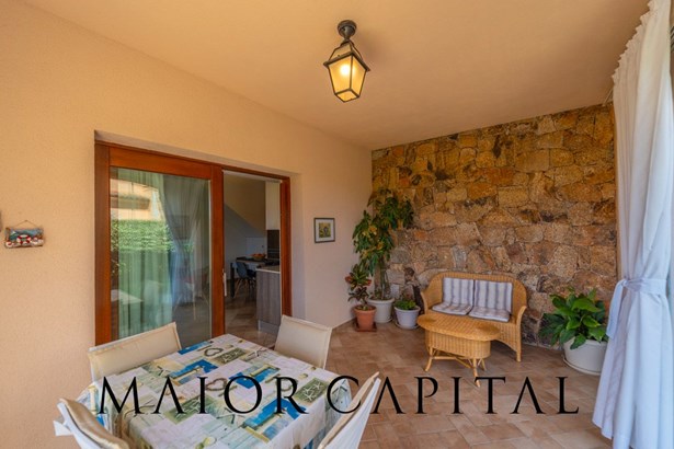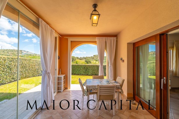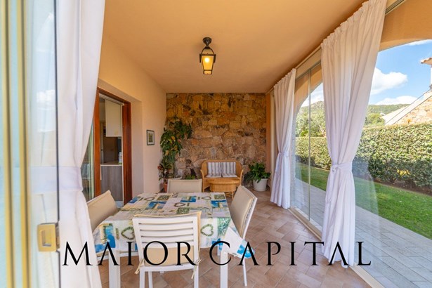 The house is free on three sides and surrounded by a perfectly maintained private garden, ideal for those who wish to live in a green, reserved and peaceful setting. The covered verandas, closed with elegant glass windows and finished with fine Sardinian granite details, are a natural extension of the living area, allowing the outdoor spaces to be enjoyed all year round.