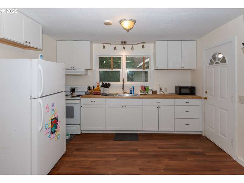 Welcome to this charming West Eugene Bungalow, that gives all the adorable "cottage core" vibes you could desire, right in town and at an affordable price! You'll love the bright open living space and darling kitchen with butcher block countertops. This home went through restoration in 2021/2022, which included updated flooring throughout, an updated kitchen and bathroom, including some updates to the plumbing and electrical. The wisteria covered fence, around the front yard is a dream in the spring months and provides nice privacy. The backyard is a blank slate and gives ample space for kids and/or pets to play. Turn it into the perfect entertaining space or add a cute little chicken coop and garden and add to the cottage feel! The detached garage gives you space to park your car or store all your things, and it has the added bonus of a large loft area! Use it as storage, turn it into a bonus room, maybe an ADU?!... The possibilities are endless!
