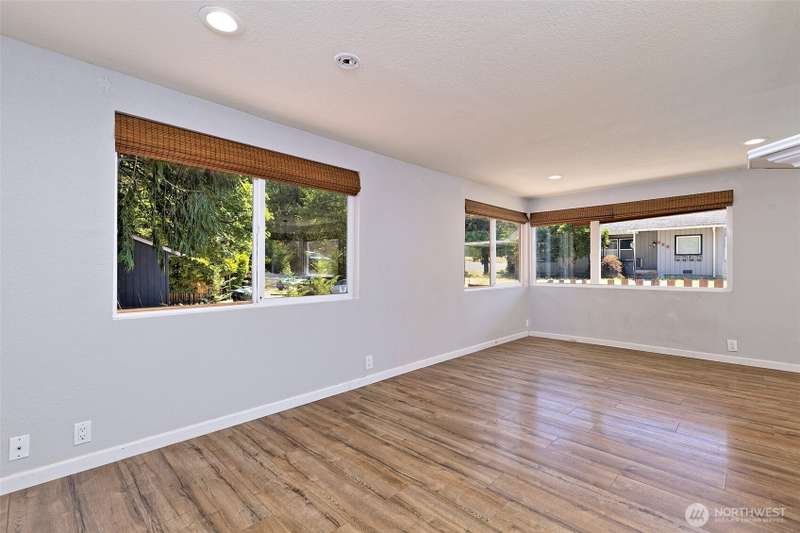 Improved price! So many possibilities here! This is a unique home with a cool layout and multiple living spaces. Most of the flooring is beautiful laminate hardwood, and the primary bedroom has a huge walk-in closet. Lovely corner lot on a dead end street with a beautiful back deck overlooking a peaceful ravine. Also features an outbuilding that has power and would be a perfect on-site office, workout room, or home business. Great off-street parking with room for your RV or boat. Located at the foot of the Olympics - a short drive to Olympia, Hood Canal, Bremerton, or the Olympic Mountains! Come see this awesome house and make it your own!