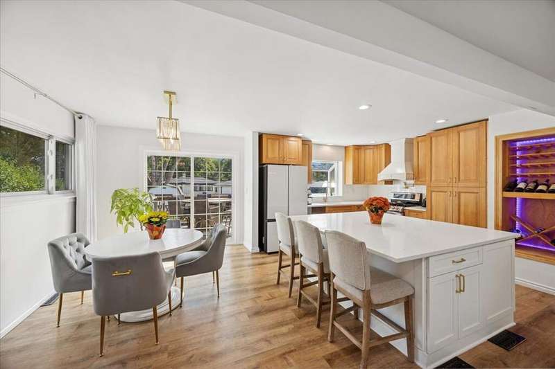 Remodeled Raised Ranch in Excellent Location! This home features an open floorplan, new flooring throughout, and numerous other improvements. The updated kitchen features a large stone island, new cabinets, wine rack, & new lighting. The spacious & private primary suite boasts a walk-in-closet, & primary bath with soaking tub, separate shower, and double vanity. Newly remodeled 2nd bath features marble, double vanity, and elegant fixtures. Step through the new sliding glass door onto your large deck, which overlooks the spacious backyard. The Fenced backyard with newer pergola is excellent for entertaining. Other improvements include new electric in 2024 & Furnace upgraded 2022. Detached 1-car garage. Walk to nearby parks, Arlington Heights Entertainment District, and the Metra Station. This home shows like a model! LOCATION! LOCATION! LOCATION!
