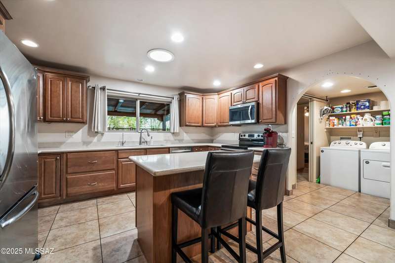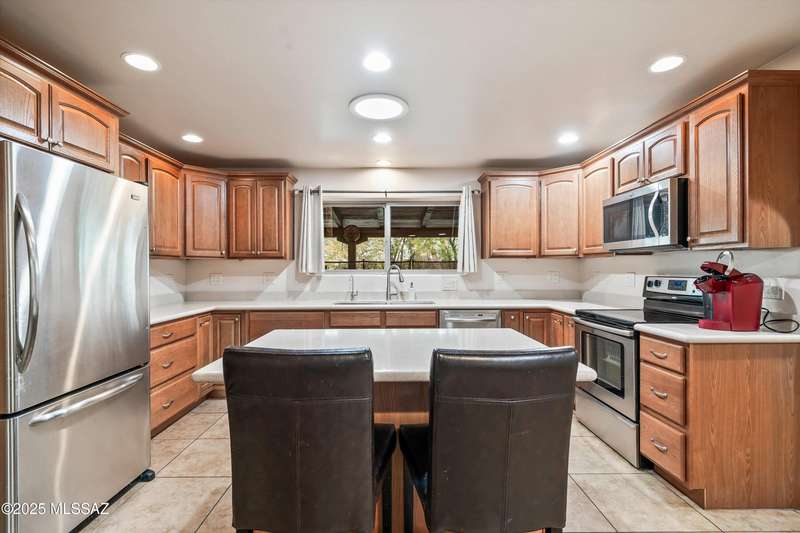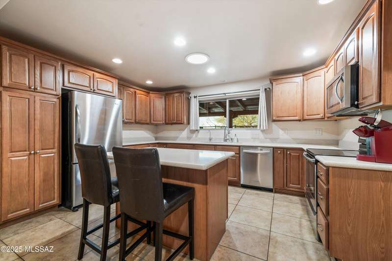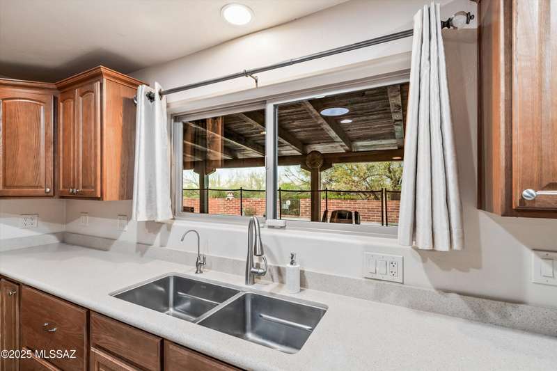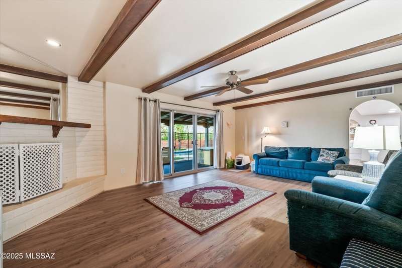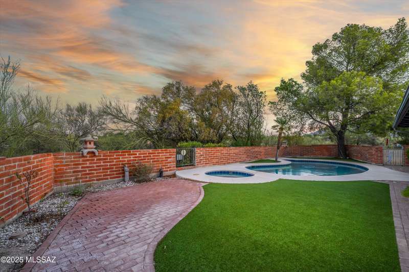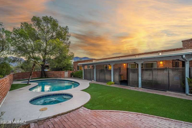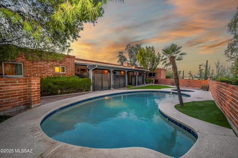 Stunning burnt adobe built home in desirable Catalina Foothills Estates No 7. This 4 BD/3 BA/2,858 Sq.Ft home sits on a large .902 acre lot and offers an inviting floorplan with separate family room w/fireplace & exposed beams, living area & formal dining space. Chef's kitchen has newer cabinets, quartz counters, island w/breakfast bar, casual dining space, stainless steel appliances & large double sink. Primary suite is spacious w/separate entrance to patio, dual vanities, shower & large walk-in closet. Split bedroom floorplan is perfect for guests. Enjoy the enclosed covered patio, refinished pebble-tec pool & spa, artificial turf & mature landscaping this pristine backyard has to offer. Convenient location to shopping, restaurants, schools, UofA & much more. Garage has separate storage