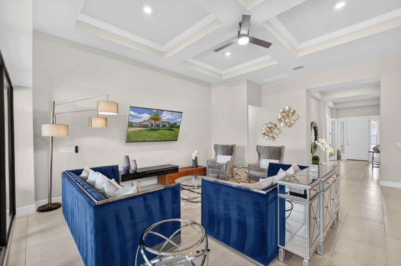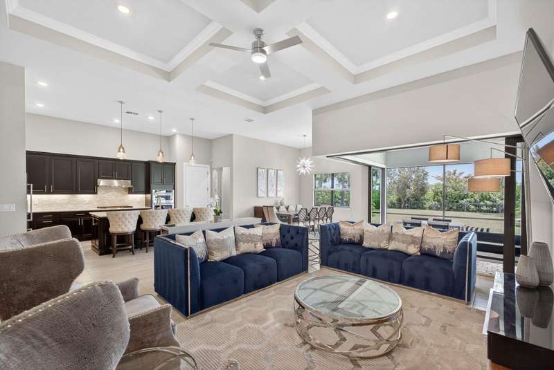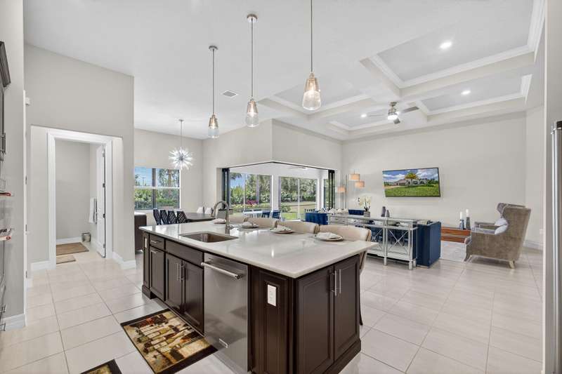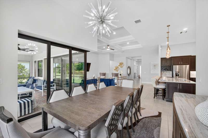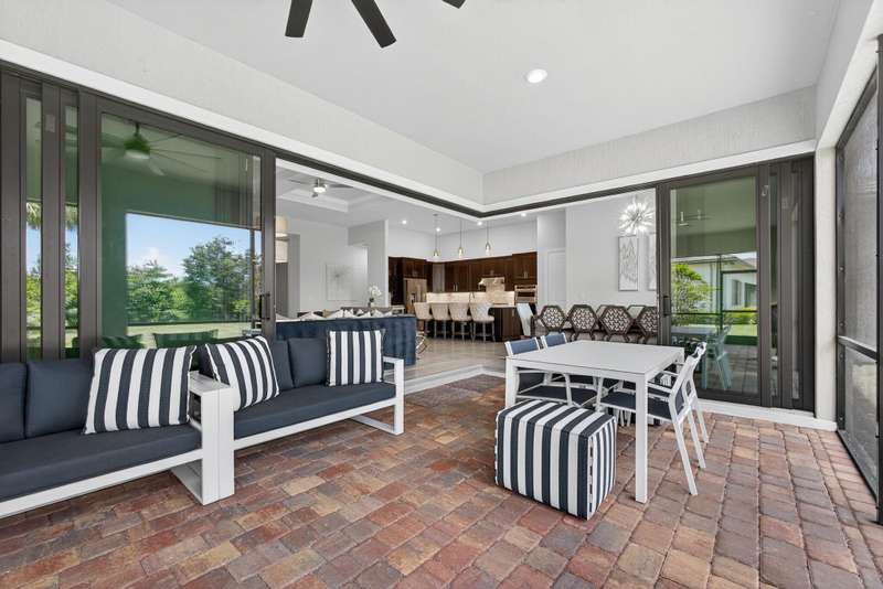 Unparalleled Elegance in this 2022, 4 Bedroom, 3 Bathroom with Den/Office Home on a Large Spacious Lot in the Prestigious Ancient Tree Community. This Distinguished Residence is the Epitome of Luxury Florida Living, Perfect for both Indoor and Outdoor Entertaining. A Well Appointed Chef's Kitchen Features Top of the Line Stainless Steel Kitchen Aid Appliances, Gas Range, Custom Island, Upgraded Cabinetry and Wine Bar. An Open Floor Plan Accents a Great Room filled with Stylish Designer Finishes like a Coffered Ceiling, Porcelain Floors and Zero Corner Sliders that lead into a Screened Lanai complete with Breathtaking Sunsets.The Primary Suite is Adorned with Spacious His & Hers Walk-In Closets with Built-Ins and a Lavish Bathroom. This Beautiful Home Truly Has it All, Move in Ready!!