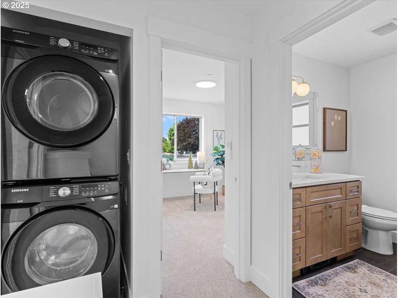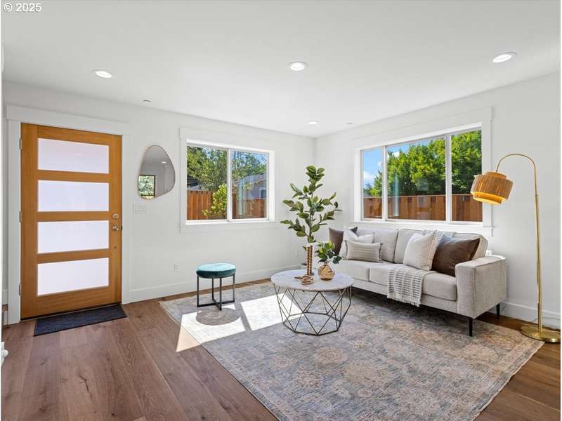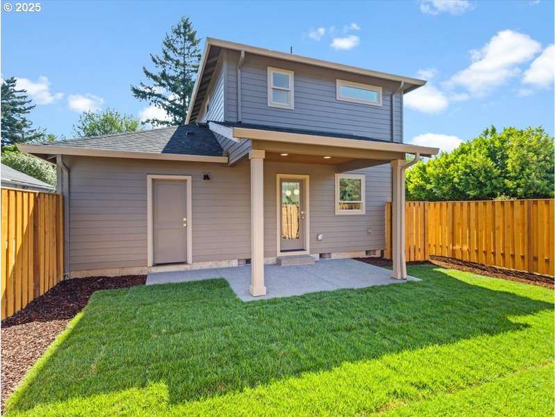 Hi there! I’m 3815 SE 76th B, your soon-to-be favorite home in Eastside Portland! I’m one-of-a-kind and proudly new, built with exceptional quality and packed with features that make life comfy and easy. I may be part of a cozy 3-home condo community, but I promise I stand out! Let me brag a little — I’ve got my very own full yard (fully fenced, of course), a garage for secure parking or maybe your future gym or office, plus a secondary off-street parking spot just for you. Pretty special for a smaller new build, right? Step inside and you’ll find all the high-end touches you’d expect from a premier custom builder: gorgeous engineered hardwood floors, plush carpets, quartz countertops, solid-wood doors, and cabinetry that makes me feel extra fancy. On my main level, I’ve got a welcoming living area complete with wall space ready for your TV (you’d be surprised how many homes forget that!). My open-concept kitchen has a large island perfect for snacks, storage, and casual meals, plus a handy pantry and a stylish half bath. Head upstairs and you’ll discover two sunny bedrooms (I’m orientated so that I’m full of natural light!), a laundry area, and a full bathroom featuring beautiful upscale tile work in the shower. My primary bedroom even comes with an extra-large closet, because I know storage is important! Outside, I’ll treat you to a covered patio and that roomy fenced yard I mentioned earlier — perfect for morning coffee, evening BBQs, or just soaking up Portland’s charm. Don’t worry about hot summers or chilly days — I’ve got a heat pump system to keep you energy-efficiently cozy all year round. I also come fully loaded with shiny new appliances: a 36” fridge with water and ice dispenser, microwave, dishwasher, and a stacked washer-dryer set. As for my HOA, it’s tiny and low-stress! The modest fees cover shared insurance, annual renewal filing, and tax prep. No expensive maintenance reserves or strict rules here — just easy community living.