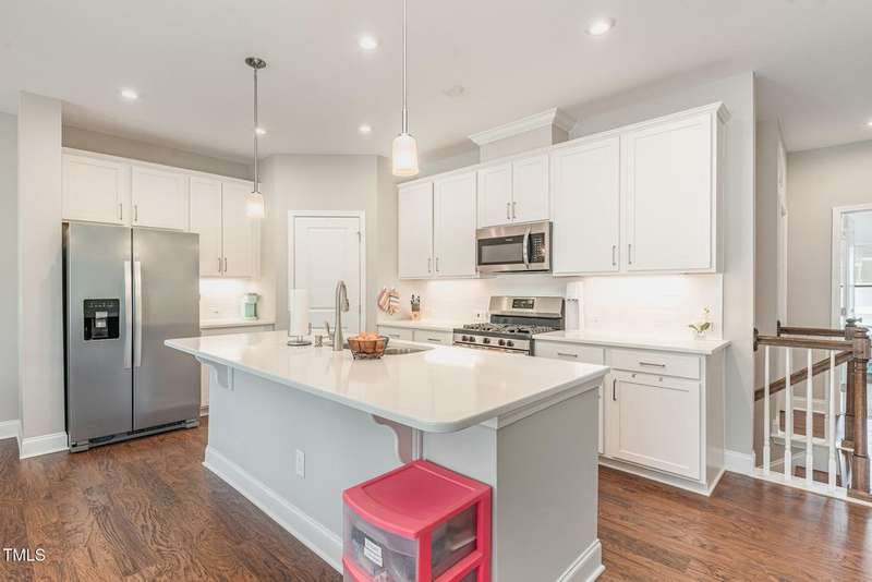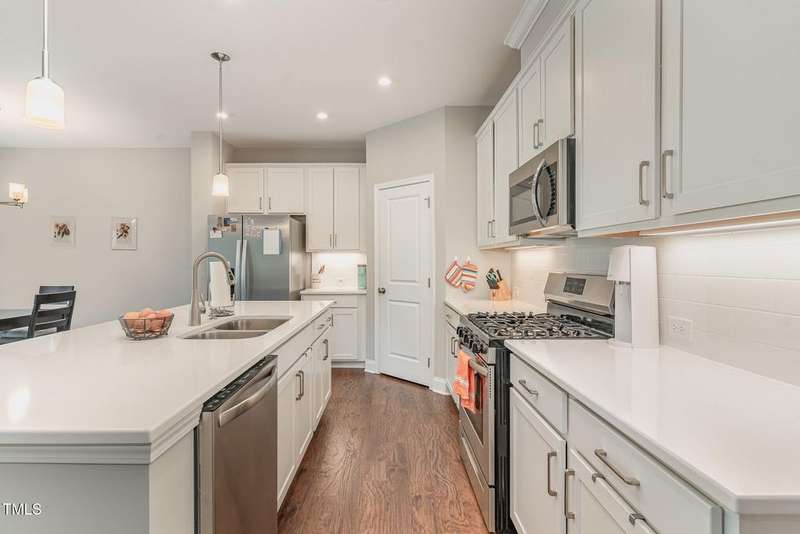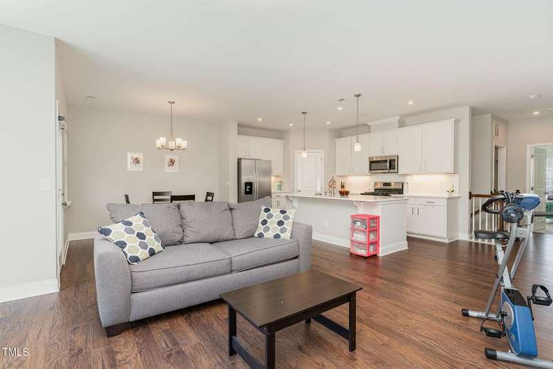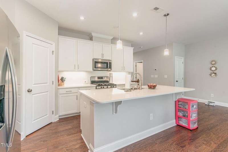 Discover this beautifully maintained Roslynn townhome nestled in the heart of the highly sought-after Briar Chapel community. Designed with both comfort and functionality in mind, this home offers an open-concept layout with thoughtful touches throughout.On the main level, enjoy a versatile floorplan featuring a private study, guest bedroom, full bath, cozy living space, and a covered porch?ideal for guests, multigenerational living, or a home office setup. The 2-car garage offers ample storage and convenience.Upstairs, you'll fall in love with the chef-inspired kitchen boasting a gas range, sleek quartz countertops, stainless steel appliances, a spacious walk-in corner pantry, and an oversized island perfect for casual dining and entertaining. The kitchen flows effortlessly into the light-filled dining and living areas. Step out onto the upper balcony and unwind while taking in peaceful views of the natural area.The luxurious owner's suite features a spa-like en suite bathroom with a glass-enclosed shower and a generous walk-in closet. Tons of storage throughout and a flexible layout make this home as practical as it is beautiful.Enjoy resort-style amenities including pools, playgrounds, 25+ miles of walking trails, and top-rated schools right within the community. All just minutes from UNC Hospital and everything Chapel Hill has to offer.https://www.briarchapelnc.com/