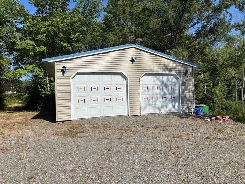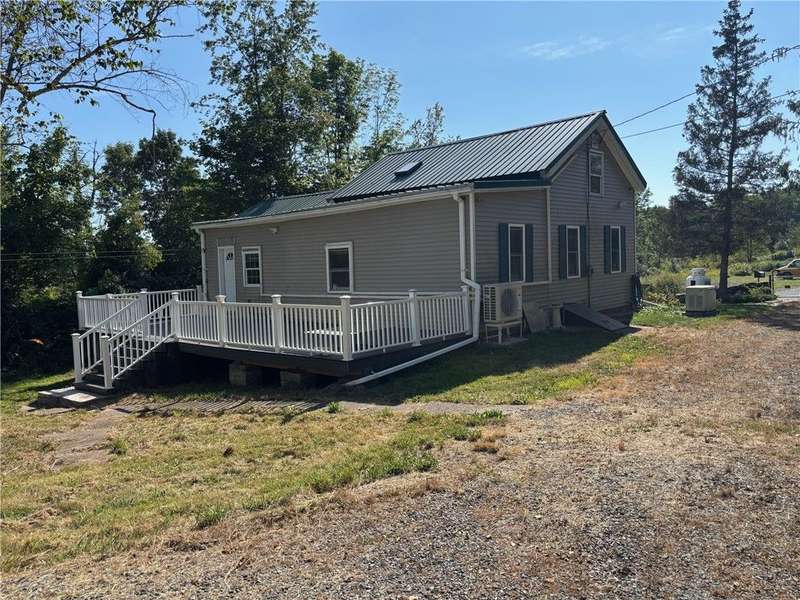 UPDATED 1875 COUNTRY HOME with 4 acres. Enjoy the convenience of 2 bedrooms on 1st floor. A beautiful back deck with Trex-type deck flooring and vinyl railings for easy maintenance overlooks your secluded back yard. Economical mini-splits installed for heat and air conditioning plus a pellet stove gives you extra warmth on cold days plus electric Baseboard heat for some rooms. A newly Built 2 Car Garage (2023) for those winter nights to protect your vehicles. Electric line to garage has been started. A covered Front porch adds to the charm of this home also with TREX- type material for easy maintenance. 4 Acres gives you plenty of room to garden & play with fencing in place to help protect your garden, plus a swing set on the property. Extra BONUS includes a GERERAC GERNERATOR in case you lose electric. Approximately 30 x 60 POND in the rear, right corner of the Property. This property is located close to Norwich for all your shopping needs, as well as Bainbridge & Sidney, Bainbridge School District. Property being sold as is. There is a plastic shed that will be removed the weekend of Nov 22-23 that has a hole in the roof.