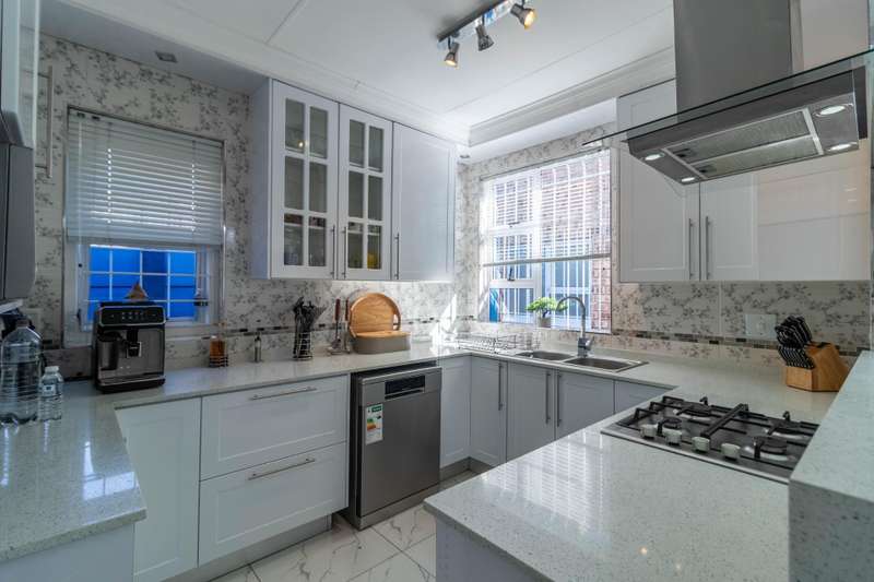 Contemporary Elegance with Timeless Charm in the Heart of Kensington Set on a generous 495m?? stand in one of Kensington?ÇÖs most sought-after pockets, this beautifully modernised home seamlessly blends contemporary living with classic character. Step inside to discover a fully tiled interior that flows effortlessly from the open-plan dining and lounge area to a versatile landing space?Çöperfect for a stylish home office or reading nook. The expansive family room opens onto a sun-drenched backyard, complete with a sparkling pool and ample space for outdoor entertaining. At the heart of the home lies the show-stopping kitchen?Çöflooded with natural light and impeccably designed with sleek white cabinetry, Caesarstone countertops, a gas stove, eat-in breakfast counter, and a dedicated laundry area. It's the ideal space for both family life and entertaining guests. Offering three spacious bedrooms with built-in cupboards, this home is perfect for families. The master suite features a private en-suite bathroom, while a well-appointed family bathroom services the additional bedrooms. Adding further value is a stylish, income-generating garden cottage?Çöaccessible via sliding doors and offering a bright lounge, open-plan kitchen, generous bedroom with built-in cupboards, and a modern bathroom. Currently rented out, this cottage provides an excellent return or can be used as a guest suite or extended family accommodation. Additional features include: One lock-up garage and one undercover carport Ample off-street parking Alarm system, electric fencing, and solar Beautifully maintained outdoor spaces for year-round enjoyment This is more than just a house?Çöit?ÇÖs a warm and inviting family home with a touch of sophistication and the bonus of extra income potential. Come and make this your dream home in the heart of Kensington.