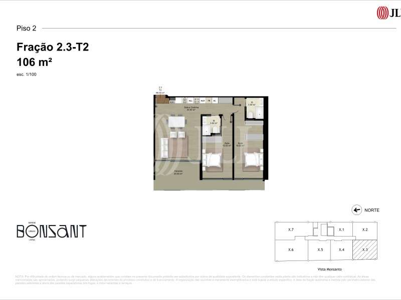Apartamento T2, novo, com 106 m2 de área bruta privativa e garagem, no condomínio Bonsant, com piscina, em Campolide, Lisboa. O apartamento foi concebido para proporcionar o máximo conforto e bem-estar, com bastante luz, espaço e privacidade, amplas janelas que prolongam os espaços interiores para o exterior e oferecem vistas de tirar o fôlego. A cozinha aberta para a sala permite o convívio e uma maior ligação entre as divisões. O Bonsant dispõe de piscina infinita na cobertura, spa, sauna, ginásio, escritórios, salas de reuniões e sala de condomínio. Estes ambientes foram pensados para oferecer o máximo conforto e fazer com que se sinta em casa. Situado num dos bairros mais tradicionais e centrais, Campolide, próximo de tudo: do centro de Lisboa com a Praça de Espanha mesmo ao lado, das praias da margem sul, da Serra de Sintra e dos acessos ao norte. A meio caminho entre o centro da cidade e a natureza do Parque Florestal de Monsanto, oferece vistas privilegiadas para este espaço verde único, o principal parque de Lisboa e um dos maiores da Europa. A estação de comboios de Campolide fica a 9 minutos a pé, o Terminal Rodoviário de Sete Rios encontra-se igualmente a 9 minutos a pé, facilitando o acesso a todos os tipos de comodidades: comércio e serviços nas Amoreiras e Campo de Ourique, universidades como a Nova de Lisboa e o Instituto Superior Técnico, hospitais e uma vasta oferta de lojas, cafés, restaurantes, galerias e museus. Categoria Energética: A #ref:93997